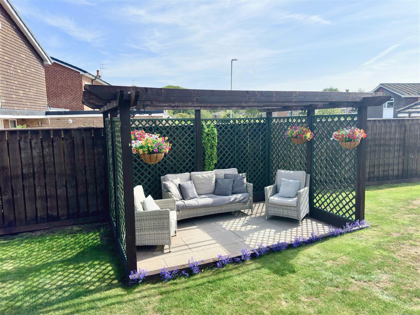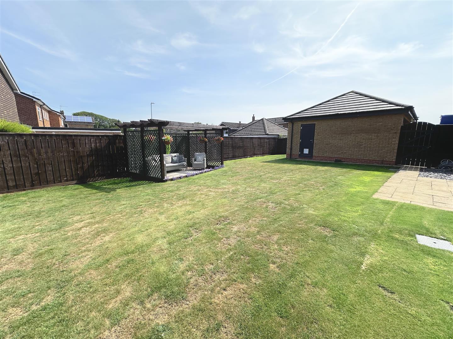 Outside an attractive garden extends to the front adjacent to which a block set driveway leads to the garage. The rear garden is predominantly laid to lawn with two patio areas to enjoy the sun throughout the day, one having a pergola over
