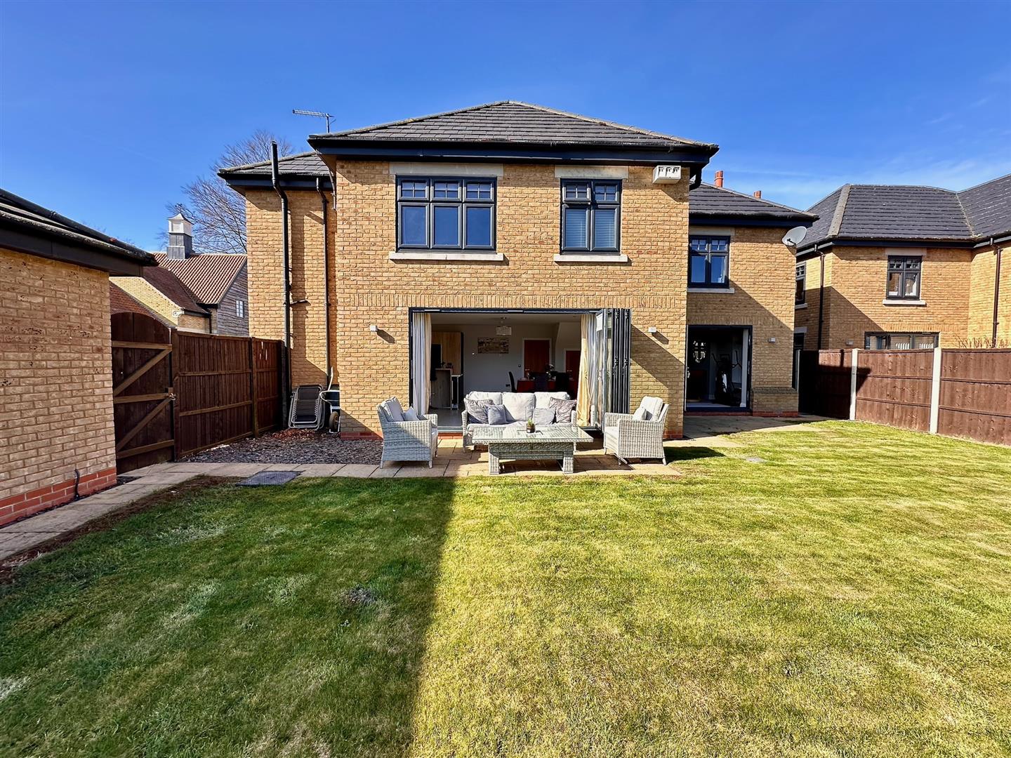This fabulous modern detached house has quality throughout. Ideal for the growing family, the property is of a stylish design providing five bedrooms, four being doubles and having high ceilings, generous proportions and an exacting specification throughout from build quality to fixtures and fittings. Built in recent times by the highly regarded local developers Messrs Scruton Homes as part of their exclusive High Beeches development, the property is attractively set to one corner of a small cul-de-sac and has excellent parking to a long driveway plus a double garage. The spacious accommodation is depicted on the attached floorplan and briefly comprises a central entrance hall, W.C., lounge with bi fold doors, study/snug with the heart of the house being the stunning open plan living kitchen with sleek units, a host of appliances and bi fold doors opening out to the rear. There is also a utility room. Upon the first floor are five bedrooms, two having en-suites plus there is a separate house bathroom. Gas central heating and uPVC double glazing are installed. Outside an attractive garden extends to the front adjacent to which a block set driveway leads to the garage. The rear garden is predominantly laid to lawn with two patio areas to enjoy the sun throughout the day, one having a pergola over. In all, an immaculately presented detached house ready for its next owner!