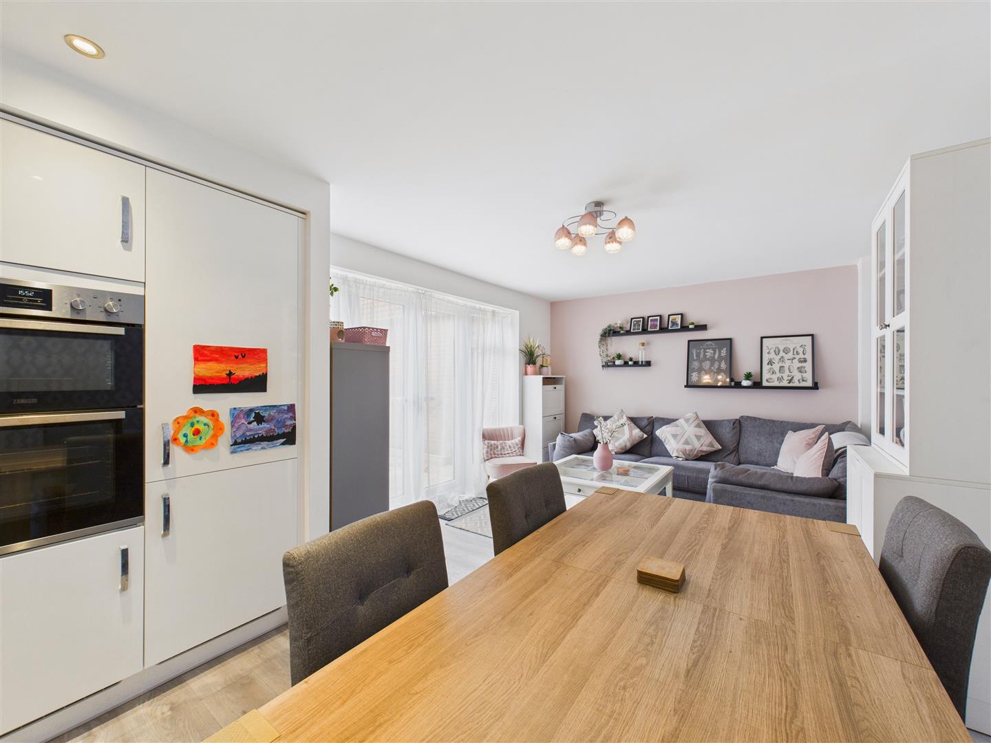 Spanning the width of the property with French doors leading out to the rear garden. The kitchen has a range of modern base and wall units with complementing worktops incorporating and one and a half bowl sink and drainer with mixer tap. Integrated appliances include a double oven, four ring gas hob with extractor above, fridge/freezer and dishwasher.