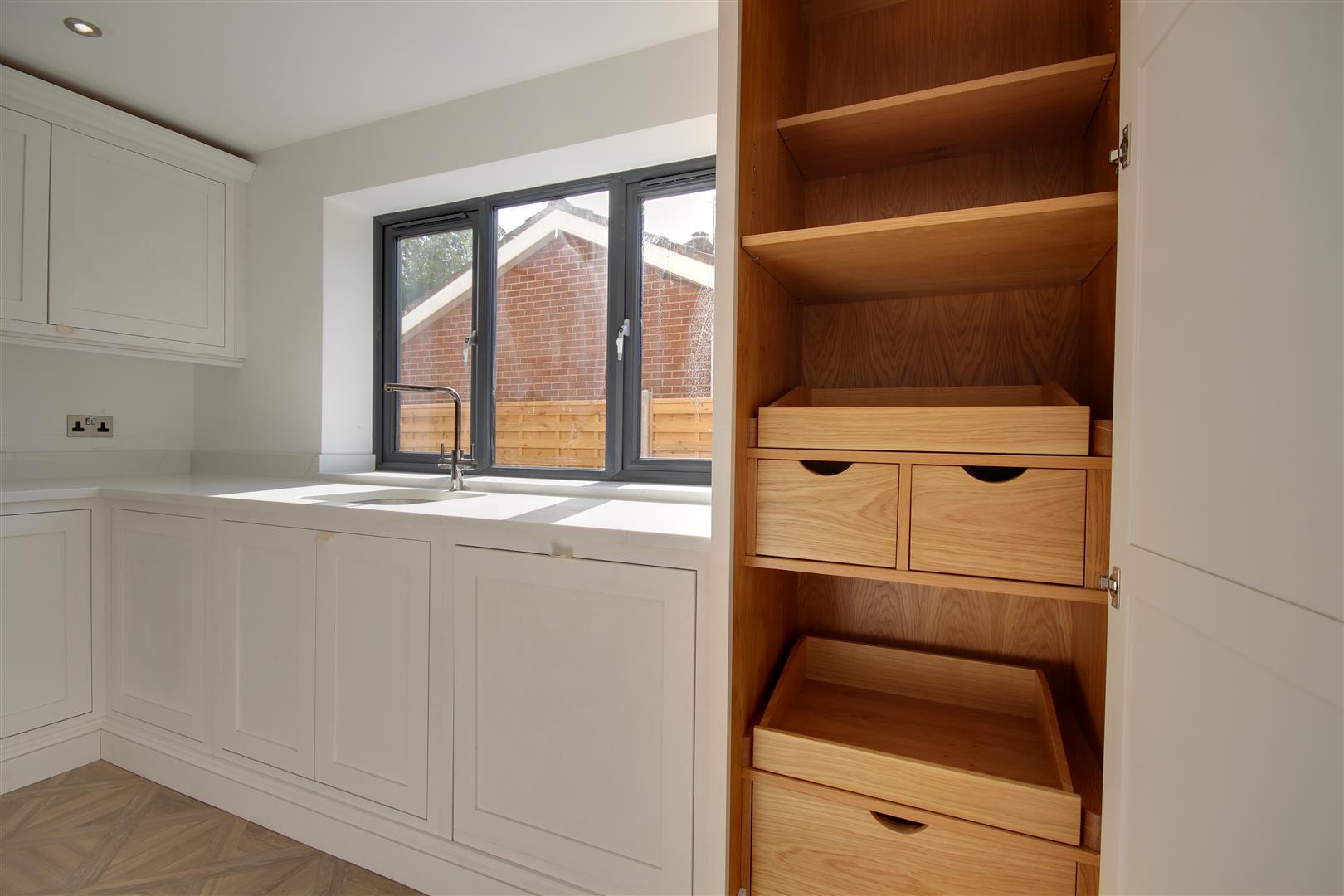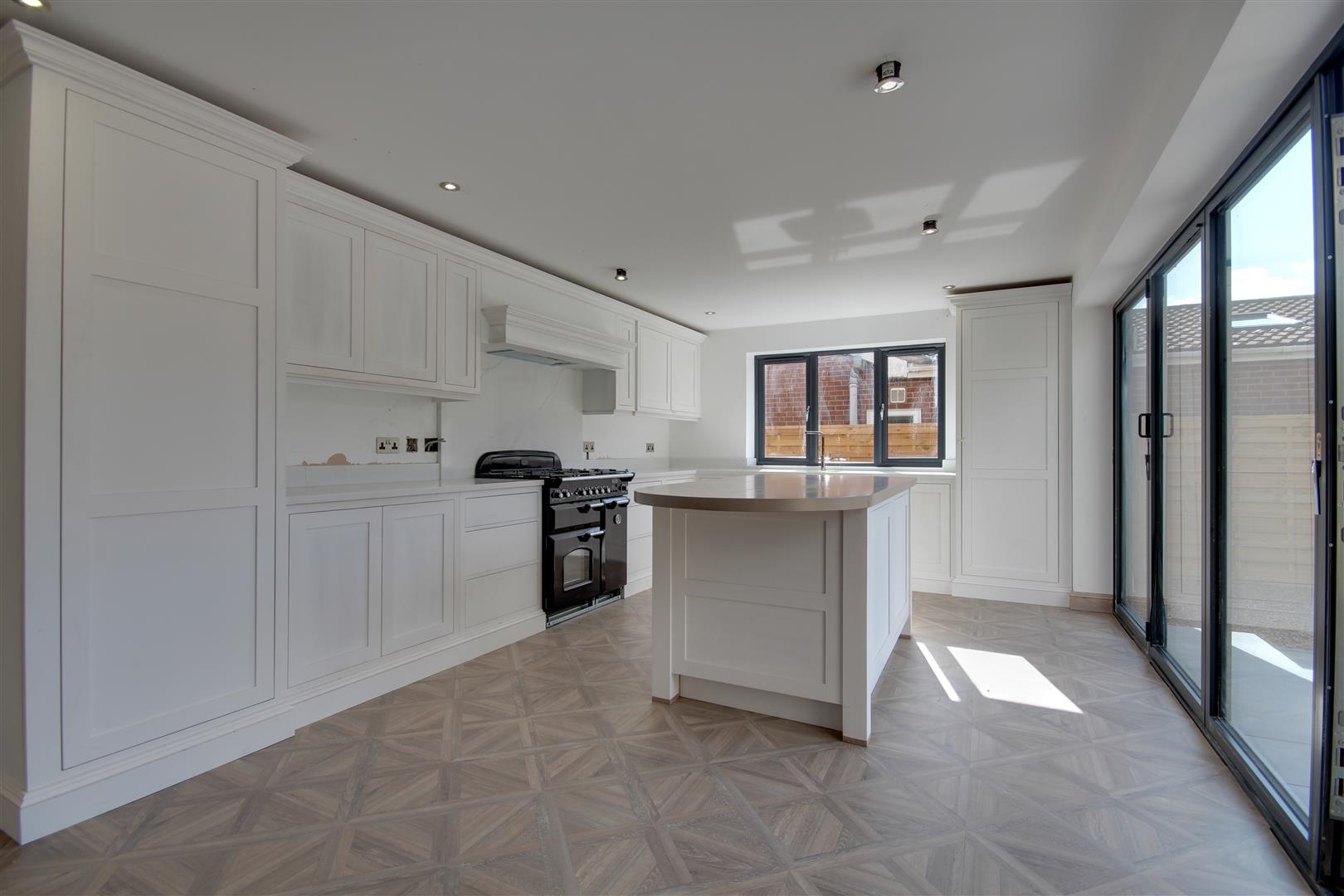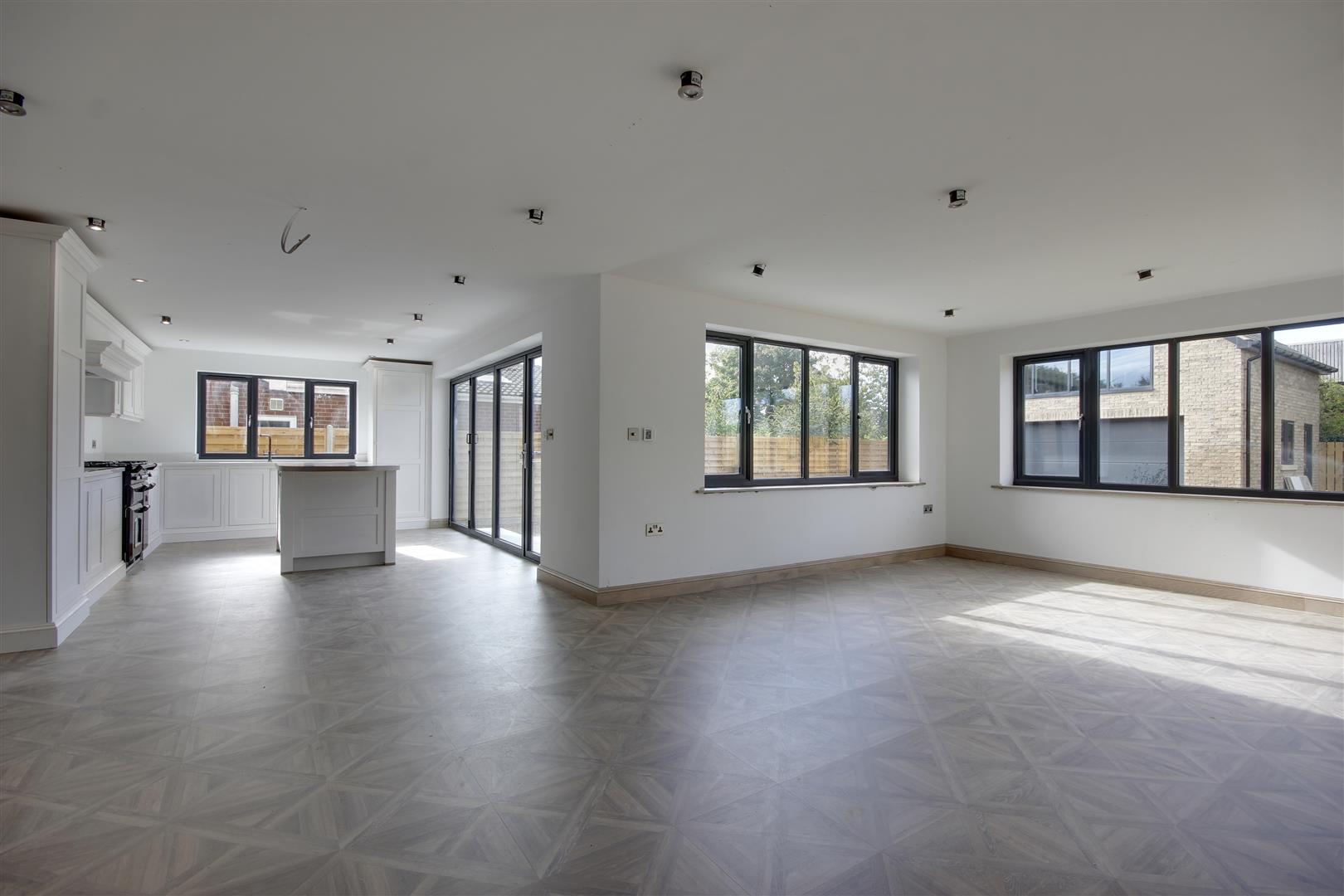 A simply stunning open plan space comprising kitchen and living areas. Featuring a top quality stunning handmade kitchen (colourway choice available). Bi fold doors open to the rear. A log burner to chimney breast will be fitted to the living area.