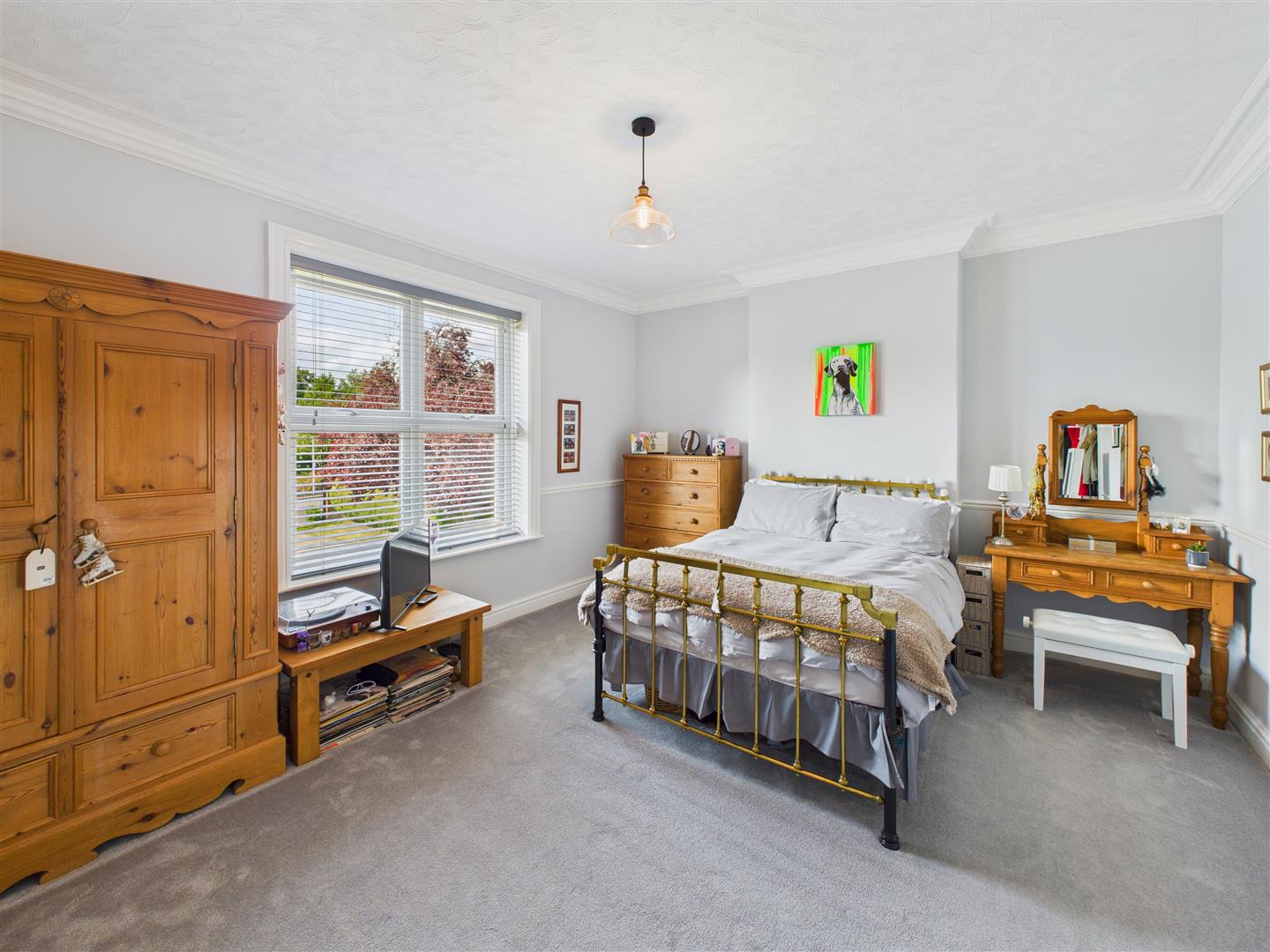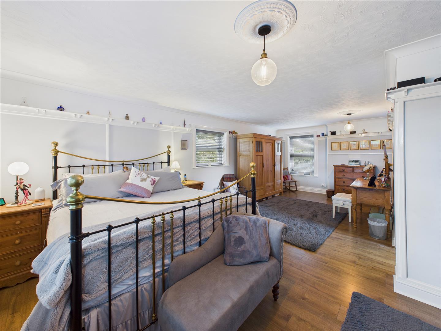 A luxurious and particularly spacious bedroom area with aspects to both front, side and rear elevations. The rear elevation overlooks the adjoining Botanic Gardens. This period style room has coving and delf rack surround.