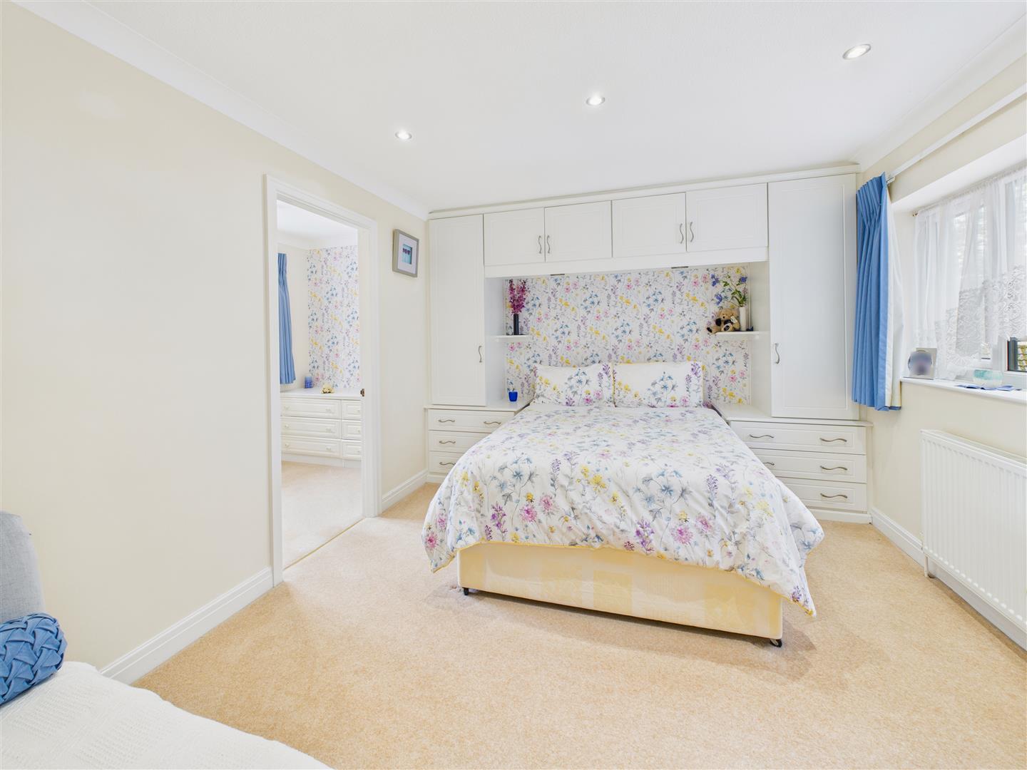 A luxurious main suite with large bedroom area having windows to two aspects. There is a range of fitted wardrobes. Cylinder cupboard to corner.