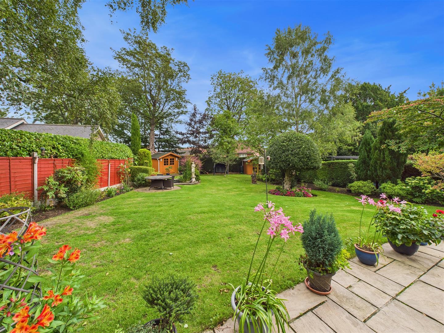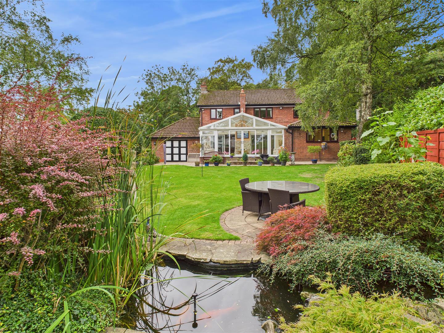 The property is approached across a block set driveway which provides parking for several vehicles and access to either one of the large single garages, one being complete with an EV charger. Overall the site extends to approximately 0.25 acre and the delightful rear garden affords tremendous privacy. There is an extensive paved patio with shaped lawn beyond and ornamental planting provides structure to the garden. There is a small pond and the rear section houses a summerhouse and shed.