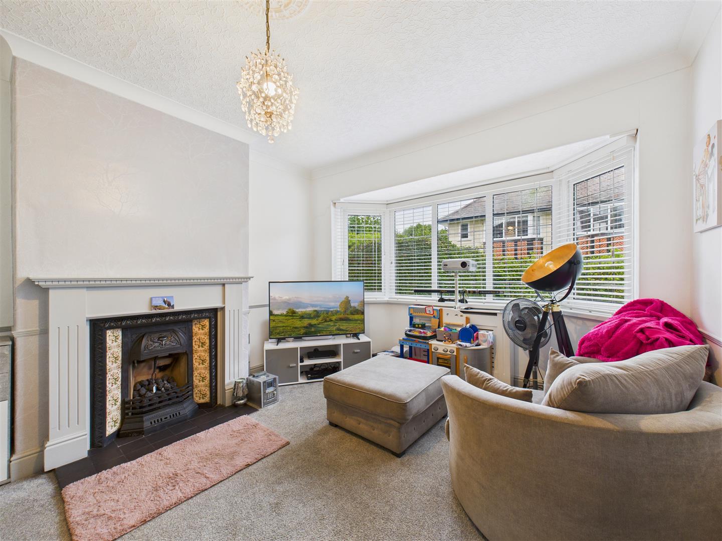 Bay window to front, Victorian fireplace with tiled hearth and ornate tiled surround.