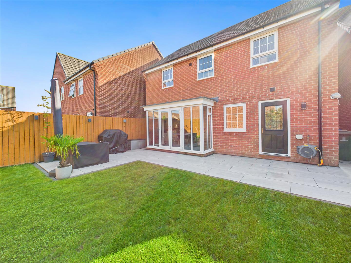 The first floor comprises four double bedrooms. The standout is the main bedroom, which is appointed with fitted wardrobes, an integral en-suite shower room, and takes full advantage of the open park views to the front. A well-equipped family bathroom serves the remaining bedrooms. The exterior features a tidy driveway and lawn at the front giving access to the integral garage, with the rear garden offering a patio area, established planted borders, and a secure boundary, providing a perfect outdoor retreat.