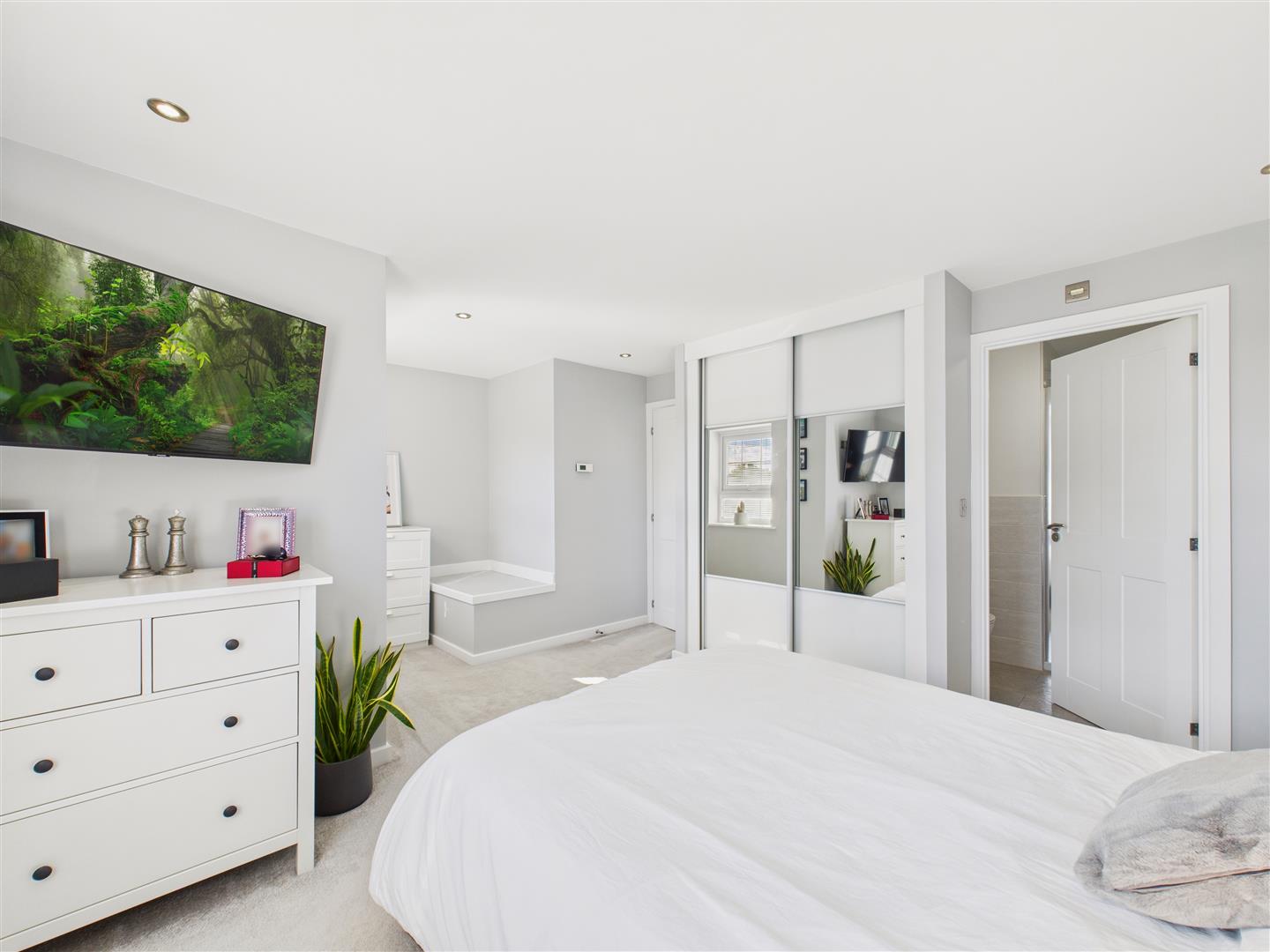 With fitted wardrobes and views across the park to the front. Downlights to ceiling.