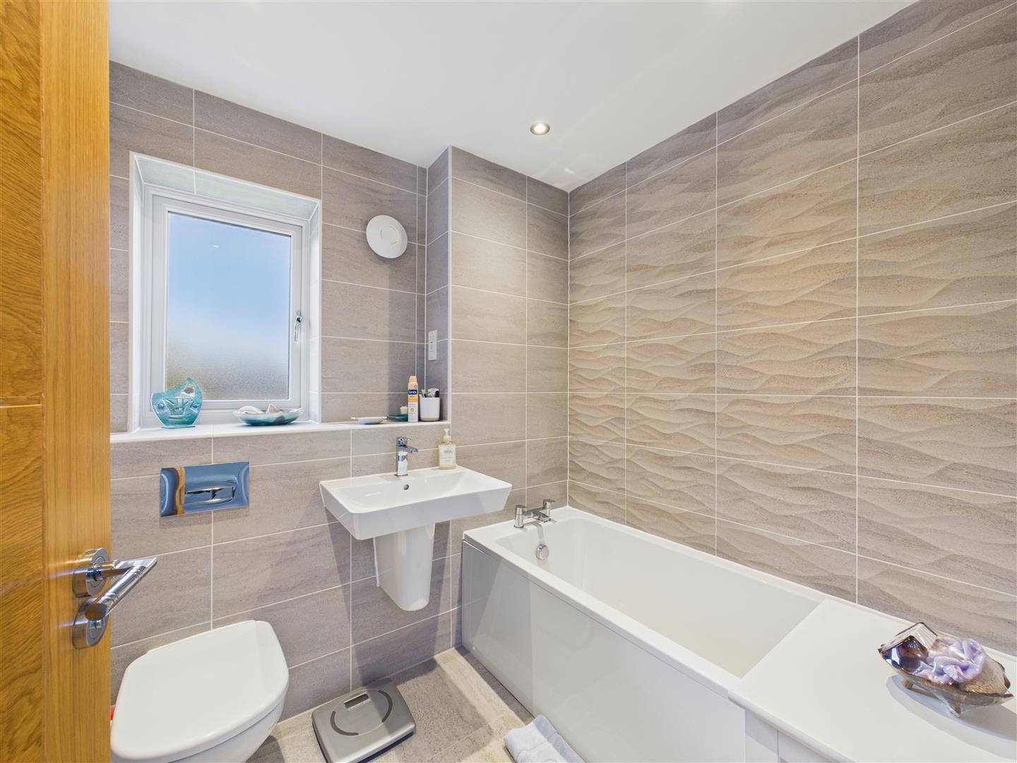 The luxury continues upstairs. The main bedroom features fitted wardrobes and a bay window plus an en-suite. A second double bedroom also benefits from an En-suite, while the remaining two bedrooms share the well-appointed family bathroom. High-quality oak doors are fitted throughout, enhancing the luxury feel.