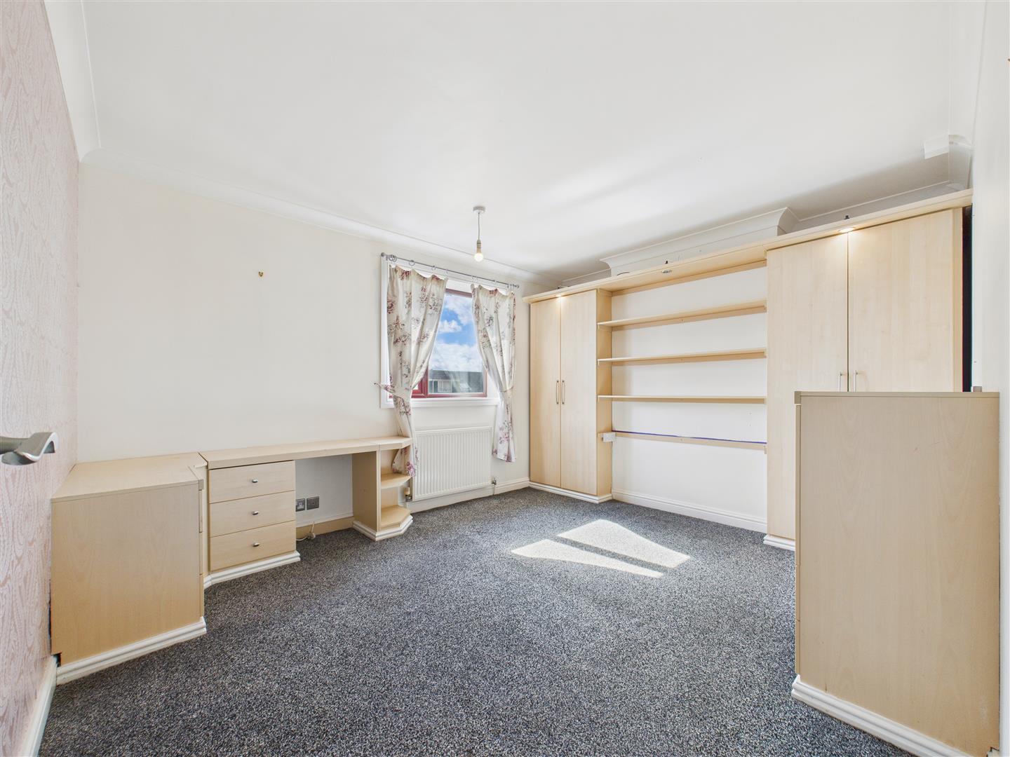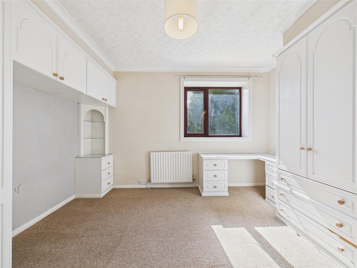 With fitted wardrobes, shelves, drawers and dressing table and a window to the rear elevation.