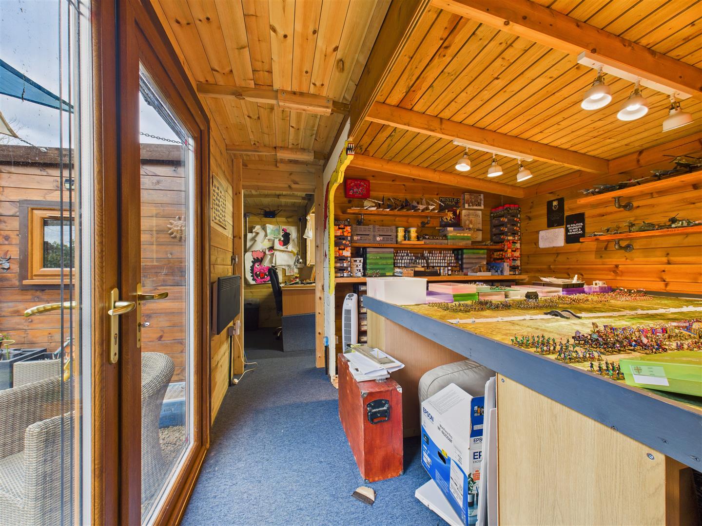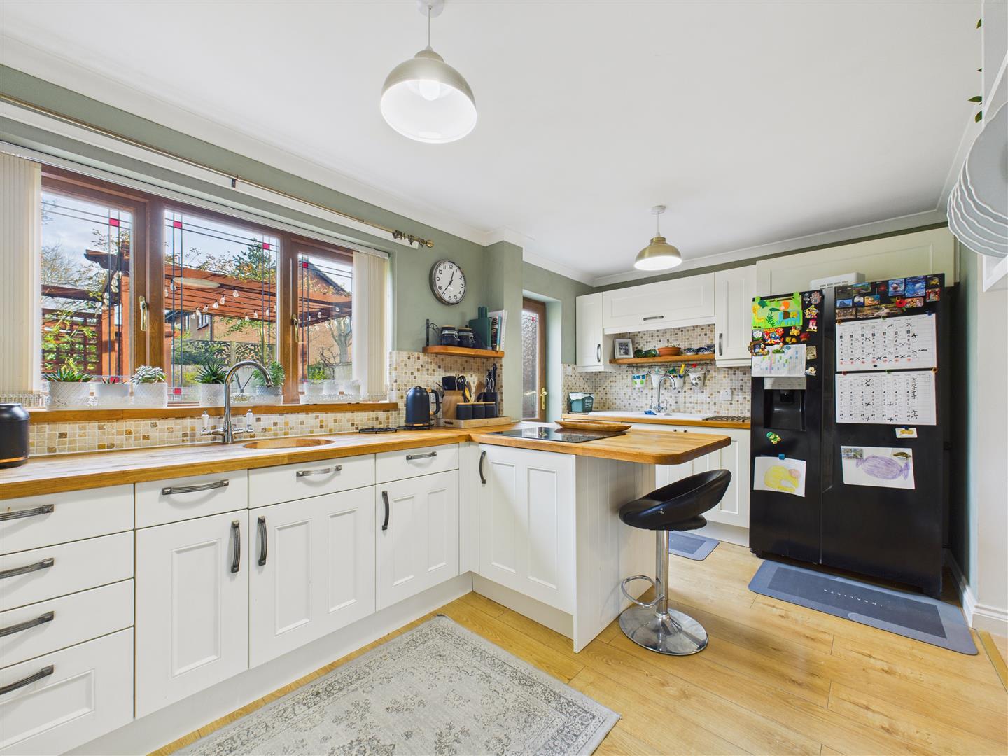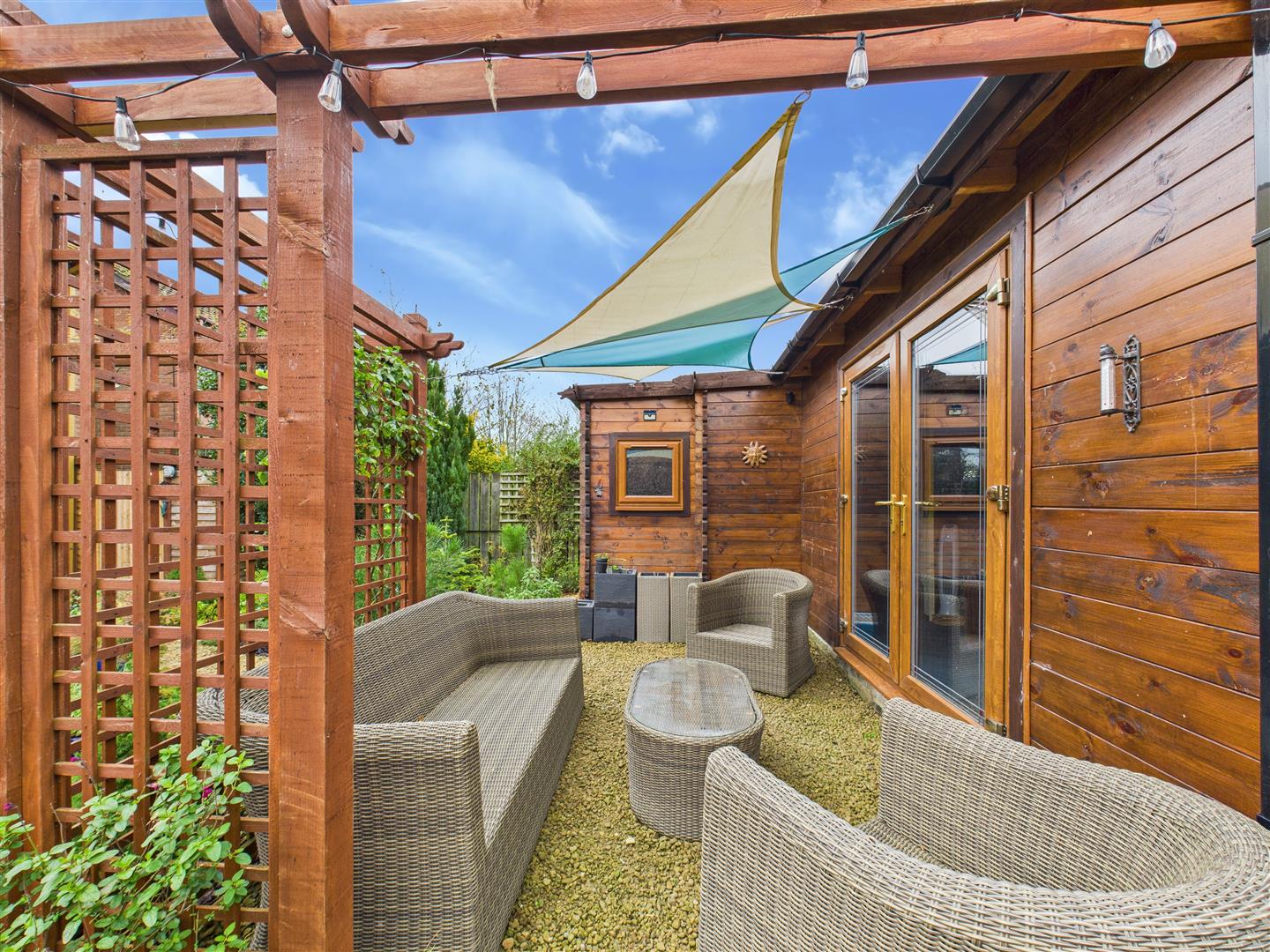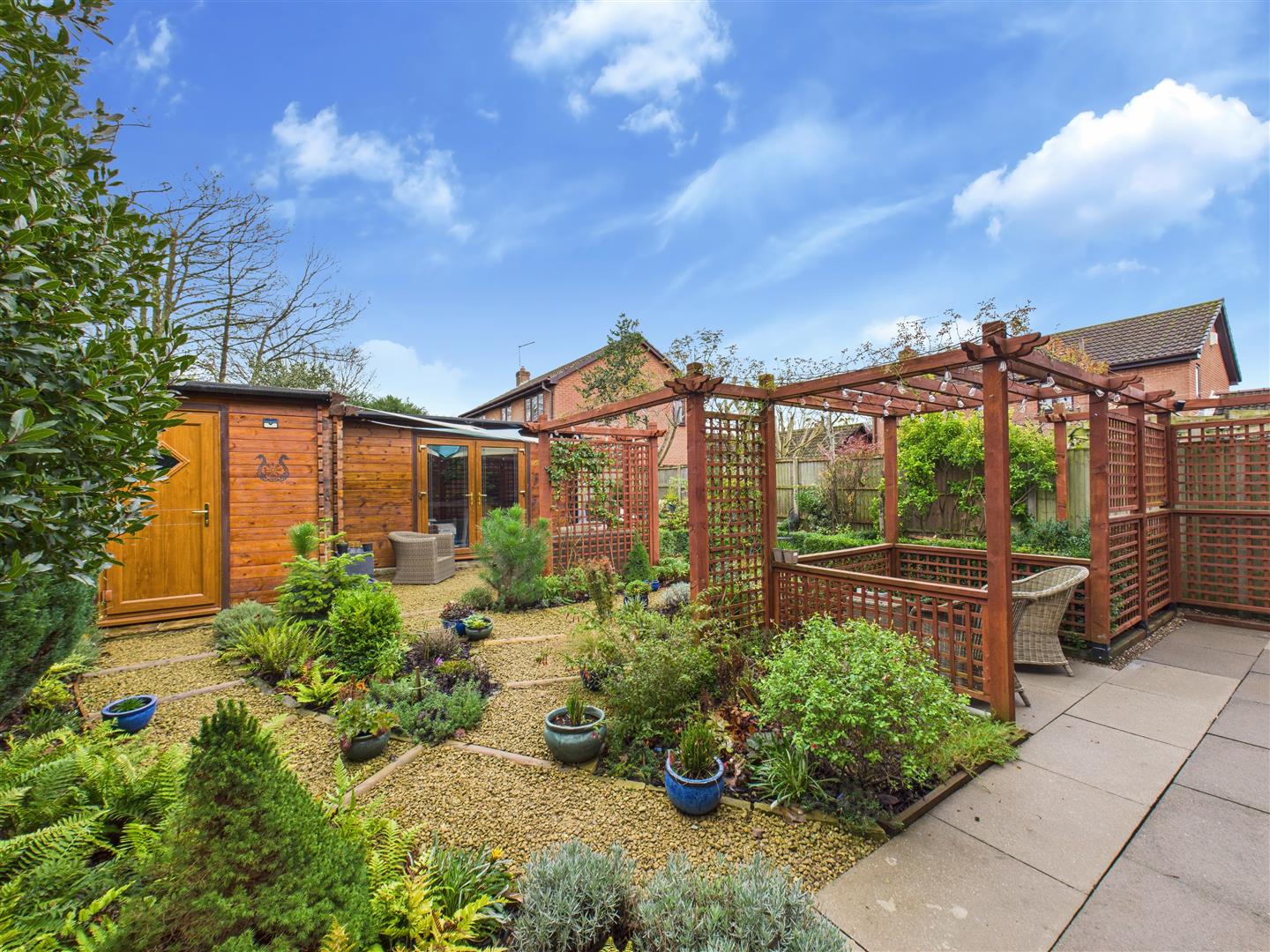 Externally, the property is introduced by a block-paved driveway offering excellent off-street parking with attractive box hedging and side access to the rear garden. The private rear garden is a delight, featuring many areas of interest including a patio with pergola, further gravelled areas, and a substantial timber summerhouse with an attached studio and potting shedâideal for those working from home. The summer house and studio have power and light plus there are two outside taps.