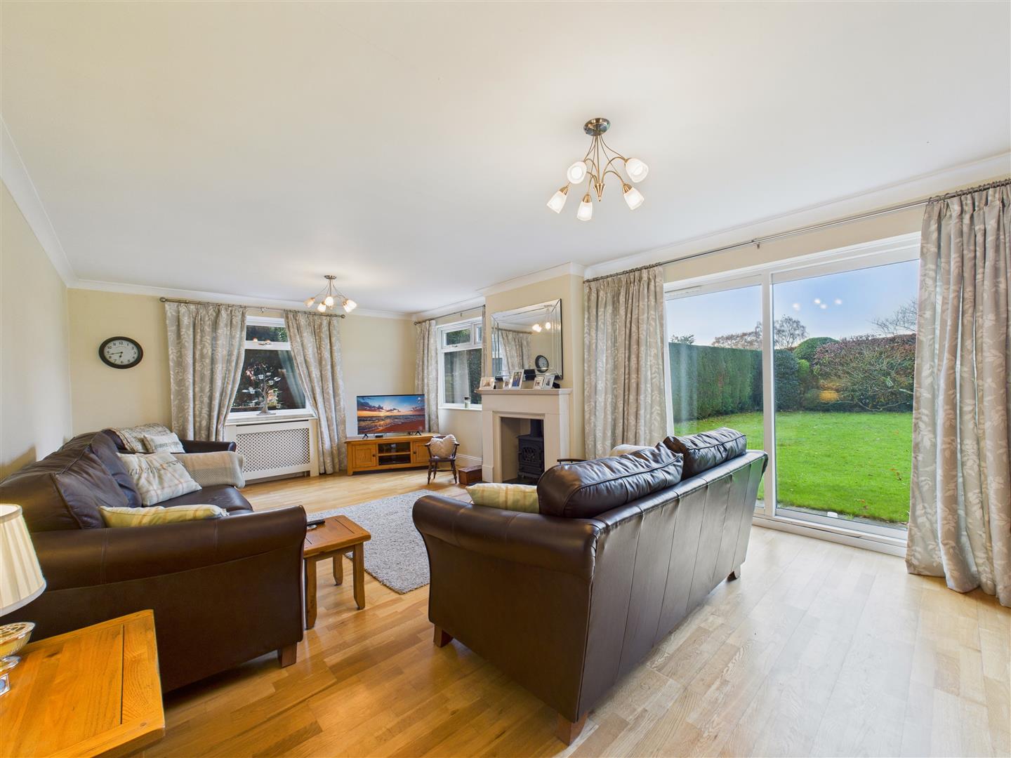 There is a paved area to the immediate rear of the property, followed by a good-sized lawn with mature hedging to border. The private driveway to the front of the property is large enough to provide comfortable off-street parking for a number of vehicles, alongside the double garage adjoined to the front of the property.