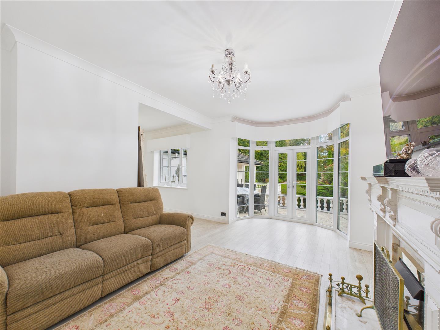 With feature fire surround housing a living flame gas fire, French doors to the rear and side opening out onto the terrace.