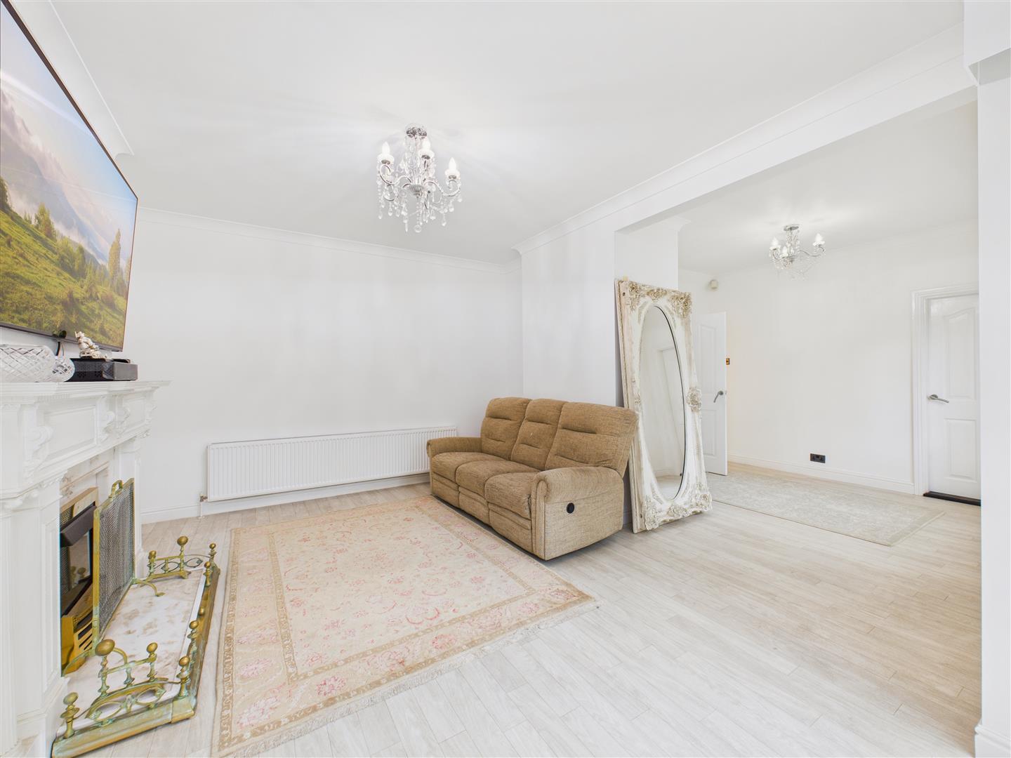 With feature fire surround housing a "living flame" remote operated gas fire and French doors leading out to the rear terrace. Amtico flooring and cupboard housing the central heating boiler.