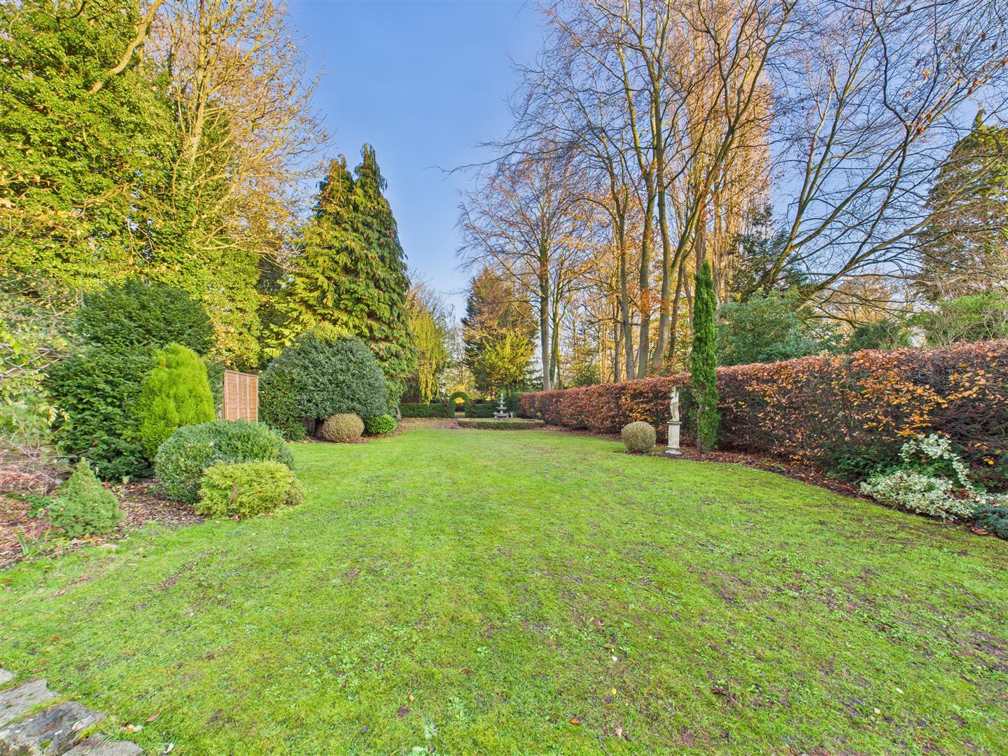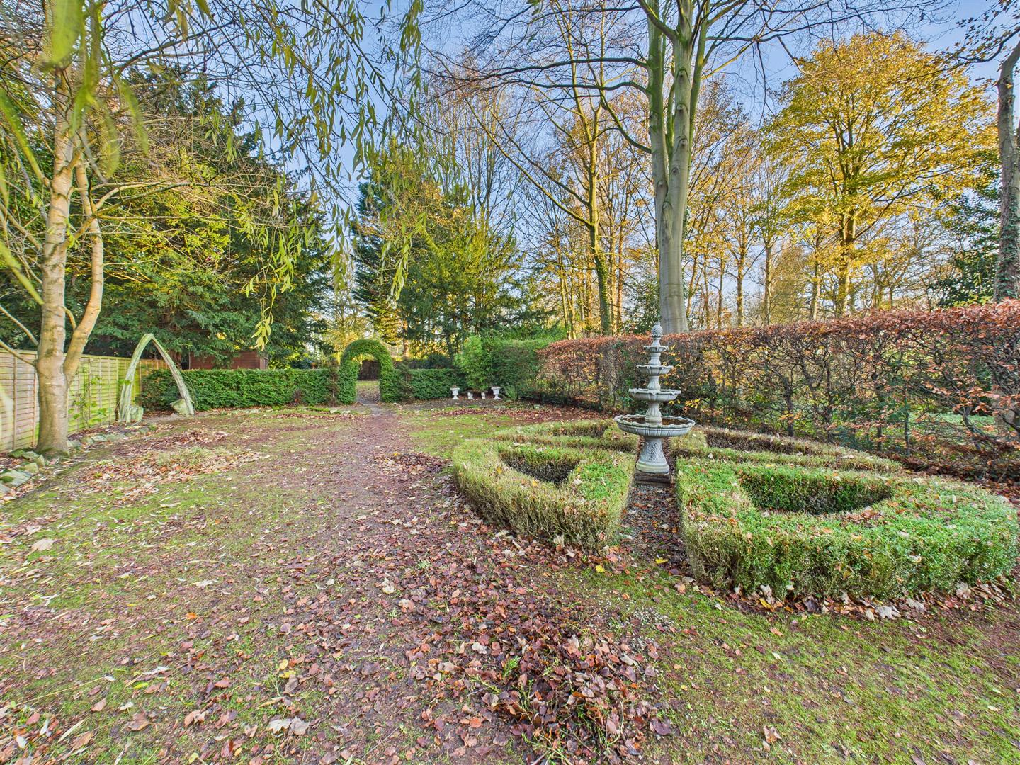 To the front of the property is an extensive driveway providing parking for several cars, shaped lawn area and a walled and hedged boundary. The rear garden is a particular feature with a stunning terrace wrapping around the rear of the property, gravelled area with lawns beyond interspersed with shrubs, trees and a whale bone arch.