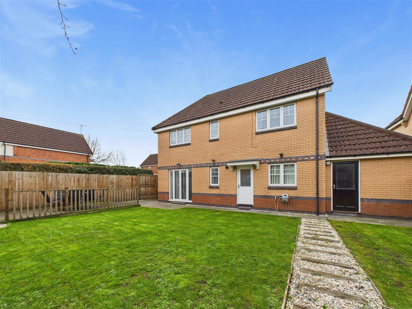 The ground floor features a central hallway, a practical cloaks/W.C., and flexible reception spaces, including a spacious lounge and a separate sitting room. The heart of the home is the contemporary-styled living kitchen, ideal for everyday dining and socialising. The first floor provides four bedrooms, including the impressive main bedroom, which is a particular feature due to its vaulted ceiling and dedicated en-suite shower room. A separate house bathroom serves the remaining rooms.