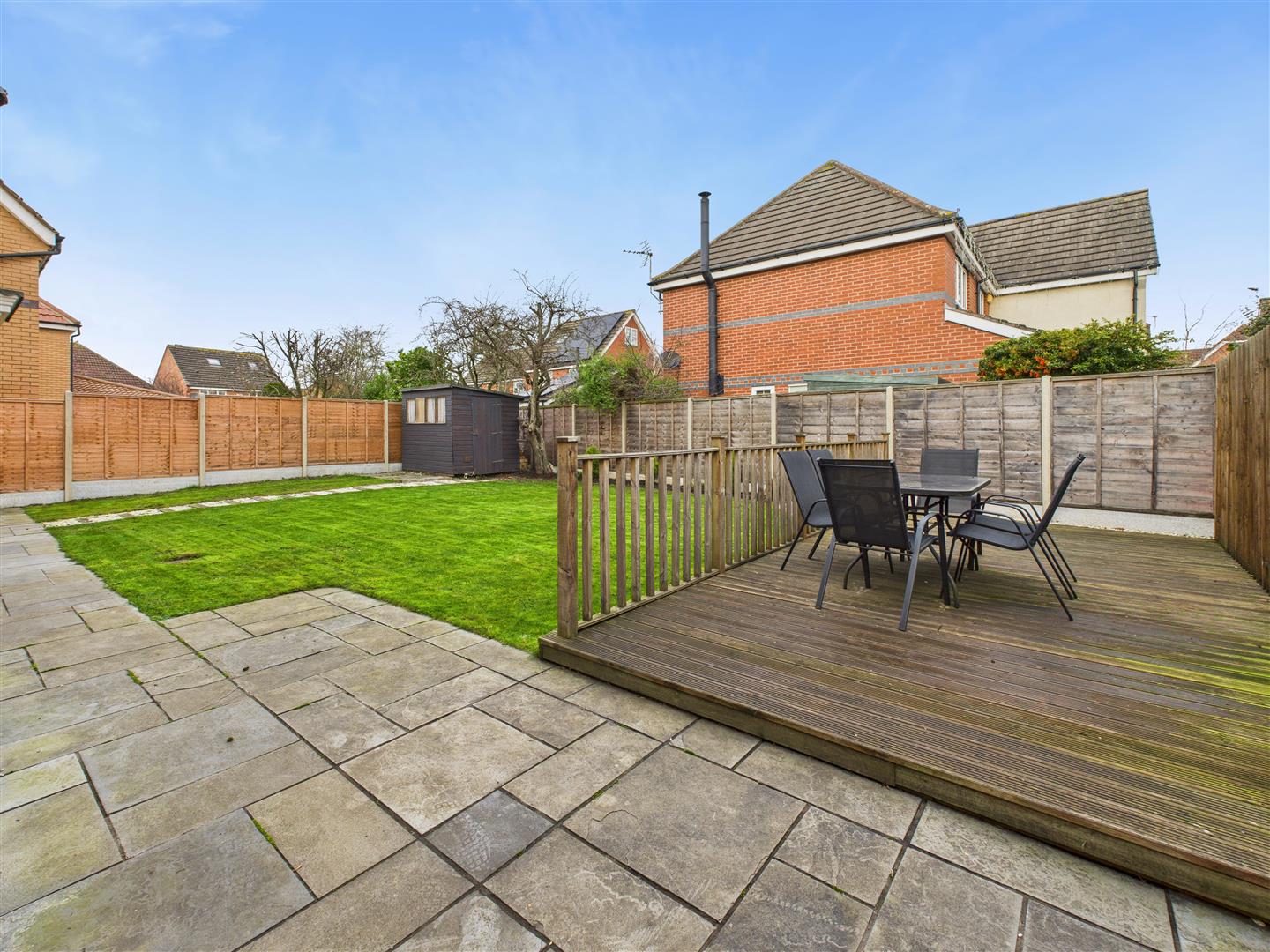 Externally, the property boasts a driveway offering parking for multiple vehicles and access to the garage. The rear garden is notably larger than average, offering a substantial lawn complemented by a large, sunny decked terraceâa perfect outdoor space for relaxing and entertaining, complete with a garden shed.