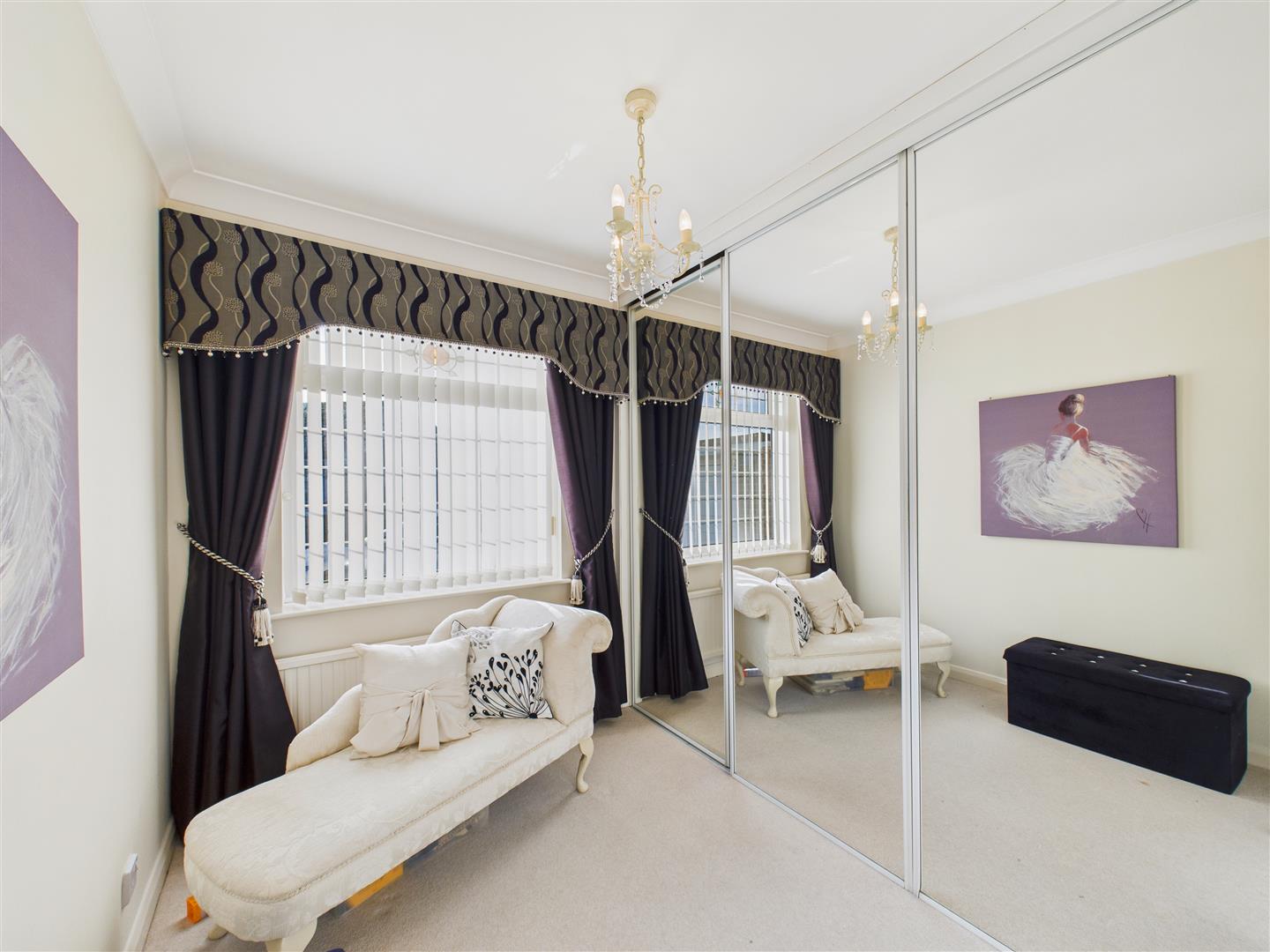With fitted wardrobes having mirrored fronts running to one wall, window to side elevations.