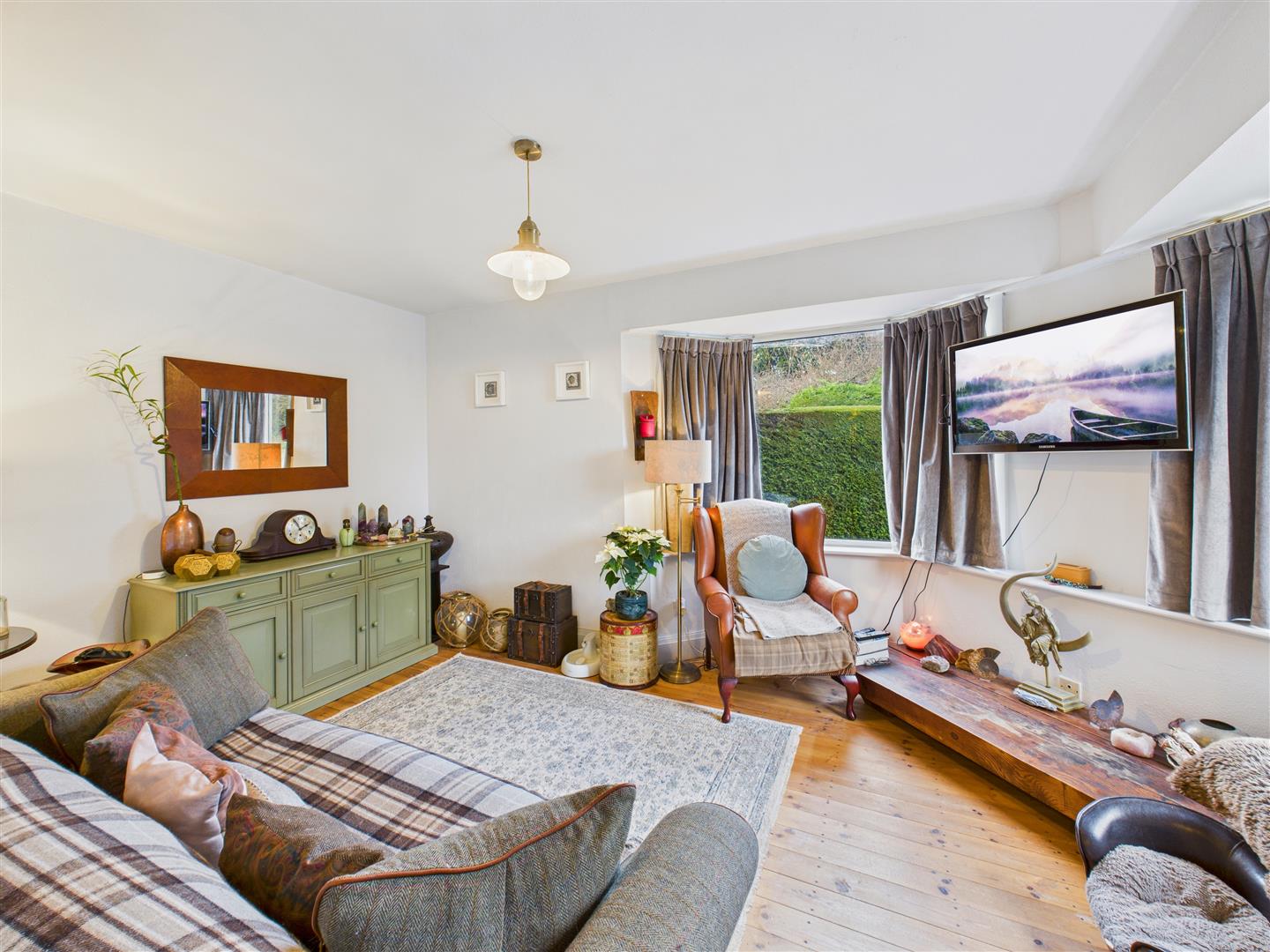 With bay windows to both front and side elevations. Attractive timber flooring.