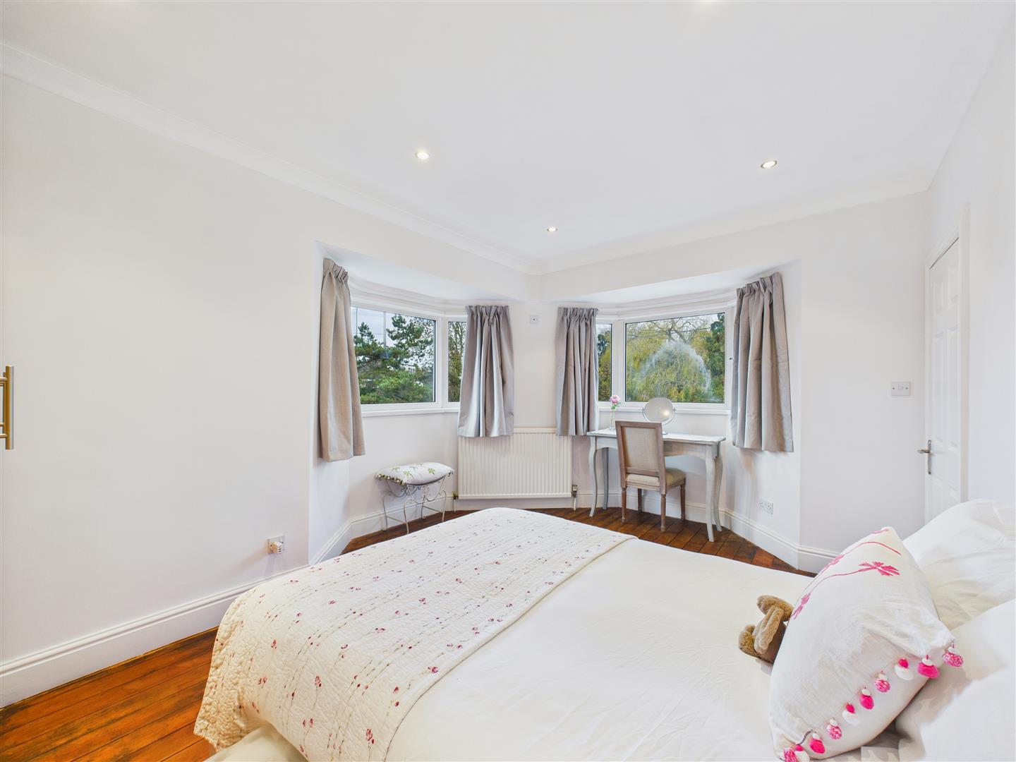 A large double bedroom with deep bay windows to both front and side elevations, which itself provides a view of the Humber Bridge in the distance. Recessed downlighters, exposed floorboarding.