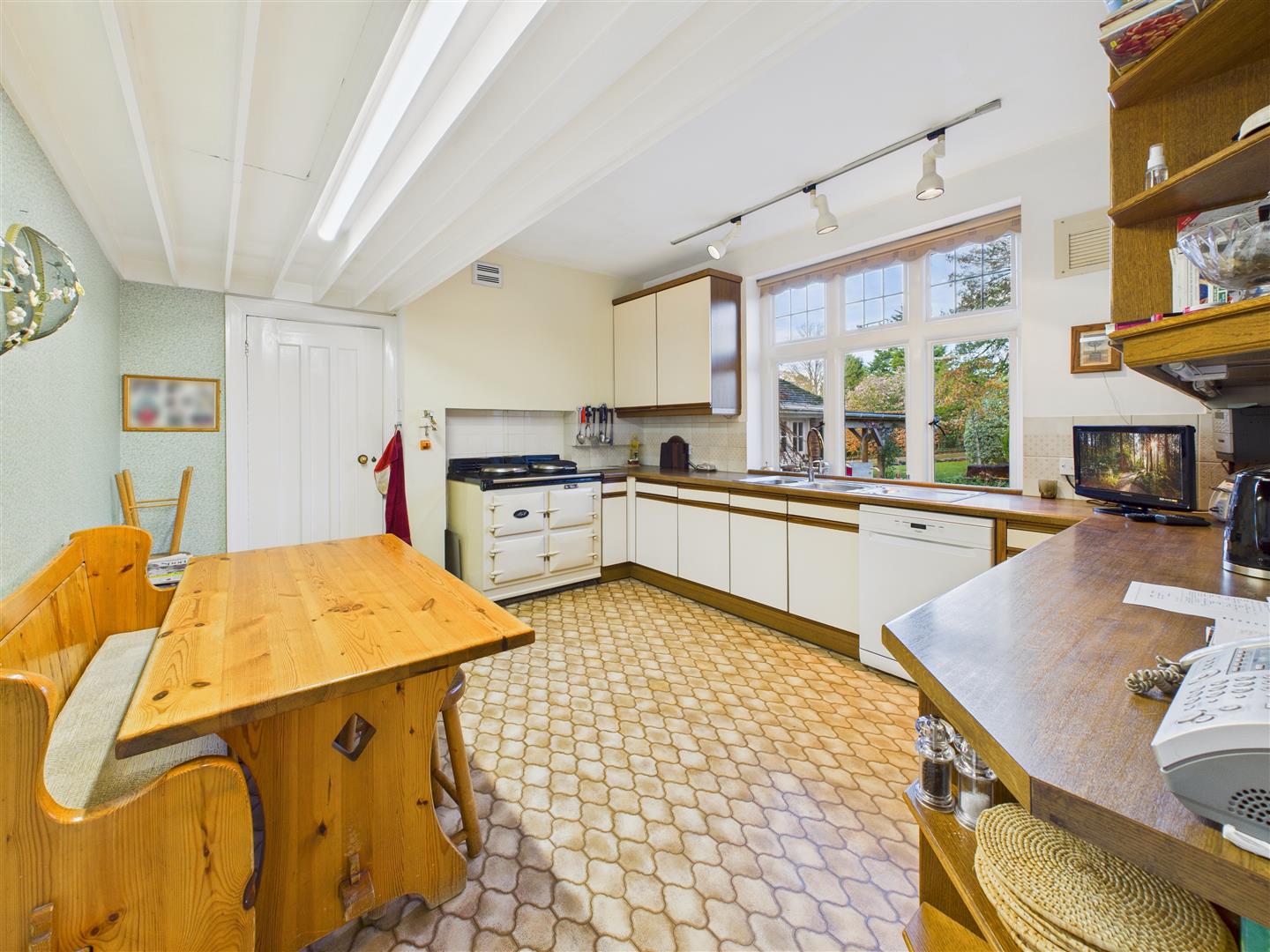 Having an extensive range of fitted units to both floor and wall, ample worksurfaces, one and a half sink and drainer with mixer tap. The focal point of the room is the gas fired AGA with twin hot plates (replaced in 2015). Plumbing for a dishwasher. Window overlooking the front driveway and forecourt. This room could be interconnected with the dining room (if desired).