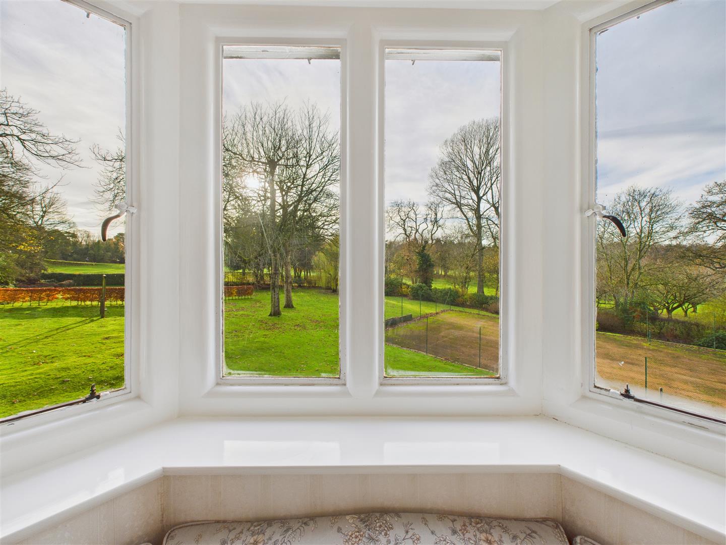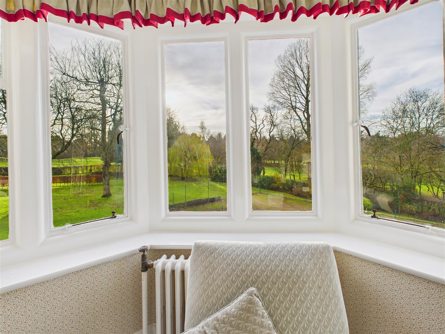 Oriel window providing a panoramic view to the south-west across the grounds and golf course beyond.