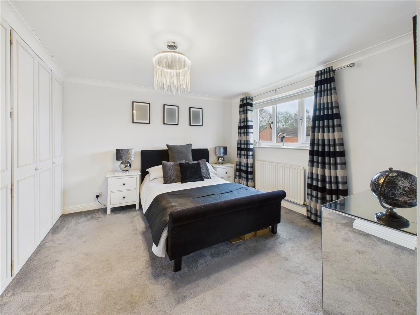 On the first floor, the accommodation consists of four well-sized bedrooms, including a stylish en-suite shower room to the principal bedroom and a modern family bathroom. The exterior is equally well-considered, featuring a lawned front garden and a driveway leading to a single integral garage. The westerly facing rear garden is a particular highlight, offering a mix of lawn, patio areas, and mature shrubs, making it an ideal space for enjoying the afternoon and evening sun.