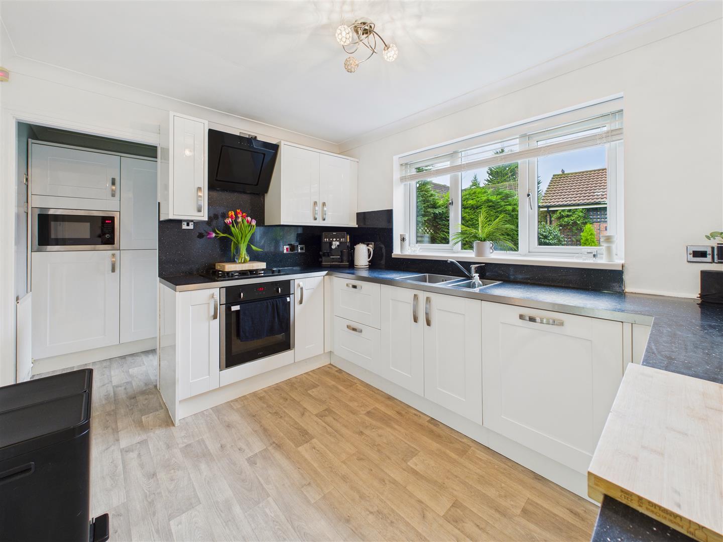 Having a range of base and wall units with complementing worktops incorporating a sink and drainer with mixer tap, oven, four ring gas hob with filterhood above plus a dishwasher. The dining area has double doors leading out to the rear garden and pocket doors which open through to the lounge.