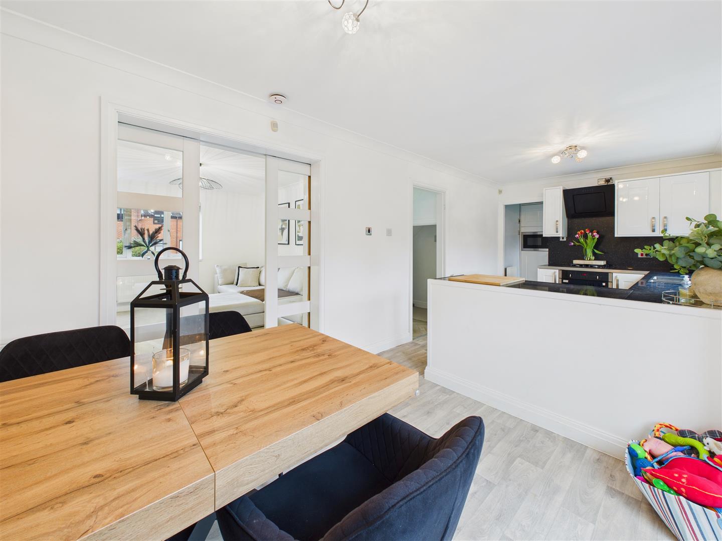This well-presented detached home is ideally suited for family life, offering a blend of stylish design and a functional layout. The ground floor is centered around an open-plan dining kitchen, which serves as a bright social hub with direct access to the rear garden. For added versatility, pocket doors allow the space to be opened up to the lounge or closed off for a more traditional, cozy feel. Practical essentials are well-catered for with a separate utility room, a guest cloakroom, and an entrance hallway.