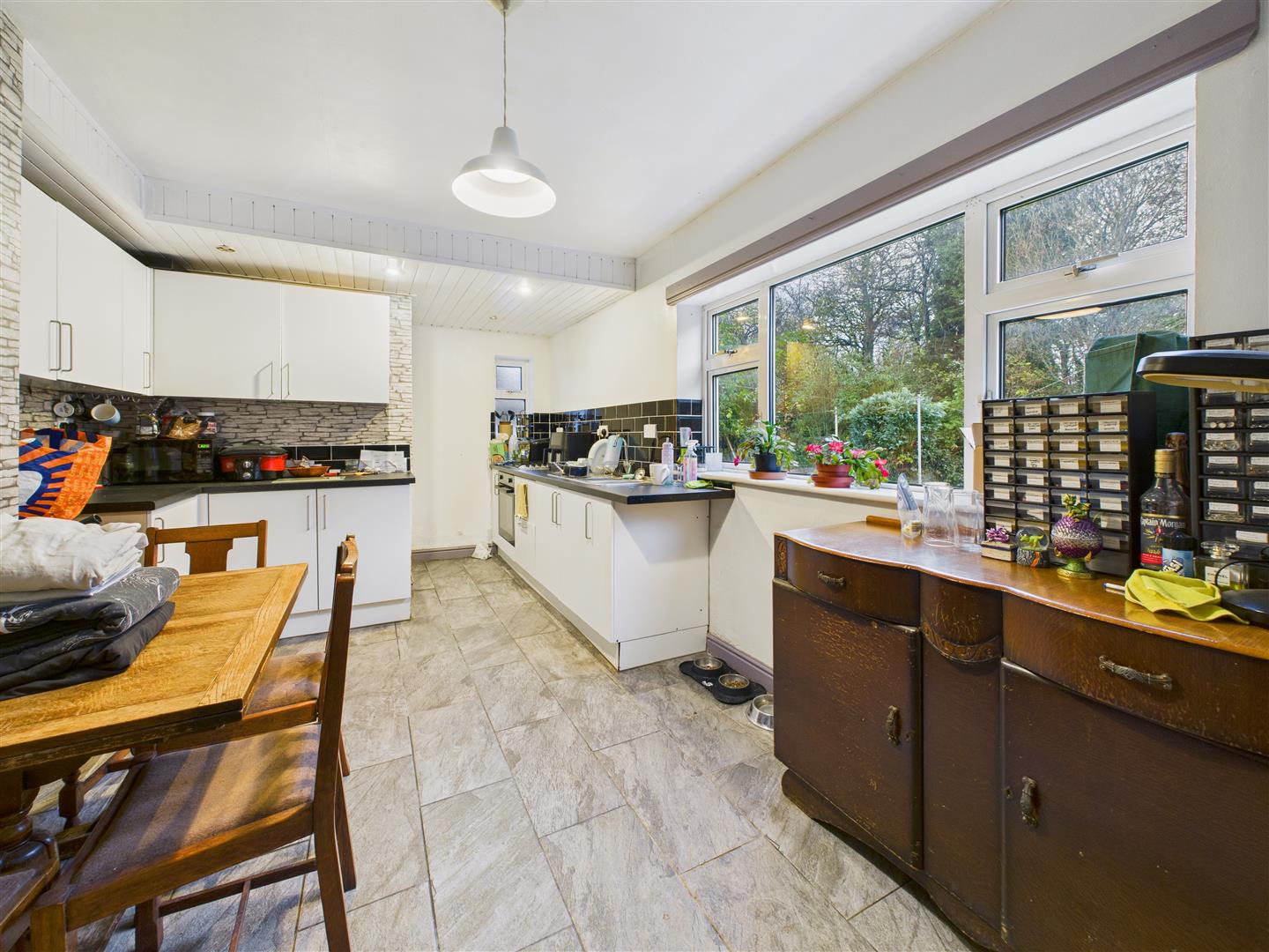 Comprising fitted units and worksurfaces, built in oven, four-ring gas hob, one-and-a-half sink & drainer, window to rear and small window to the side of the property. A door opens into the utility.