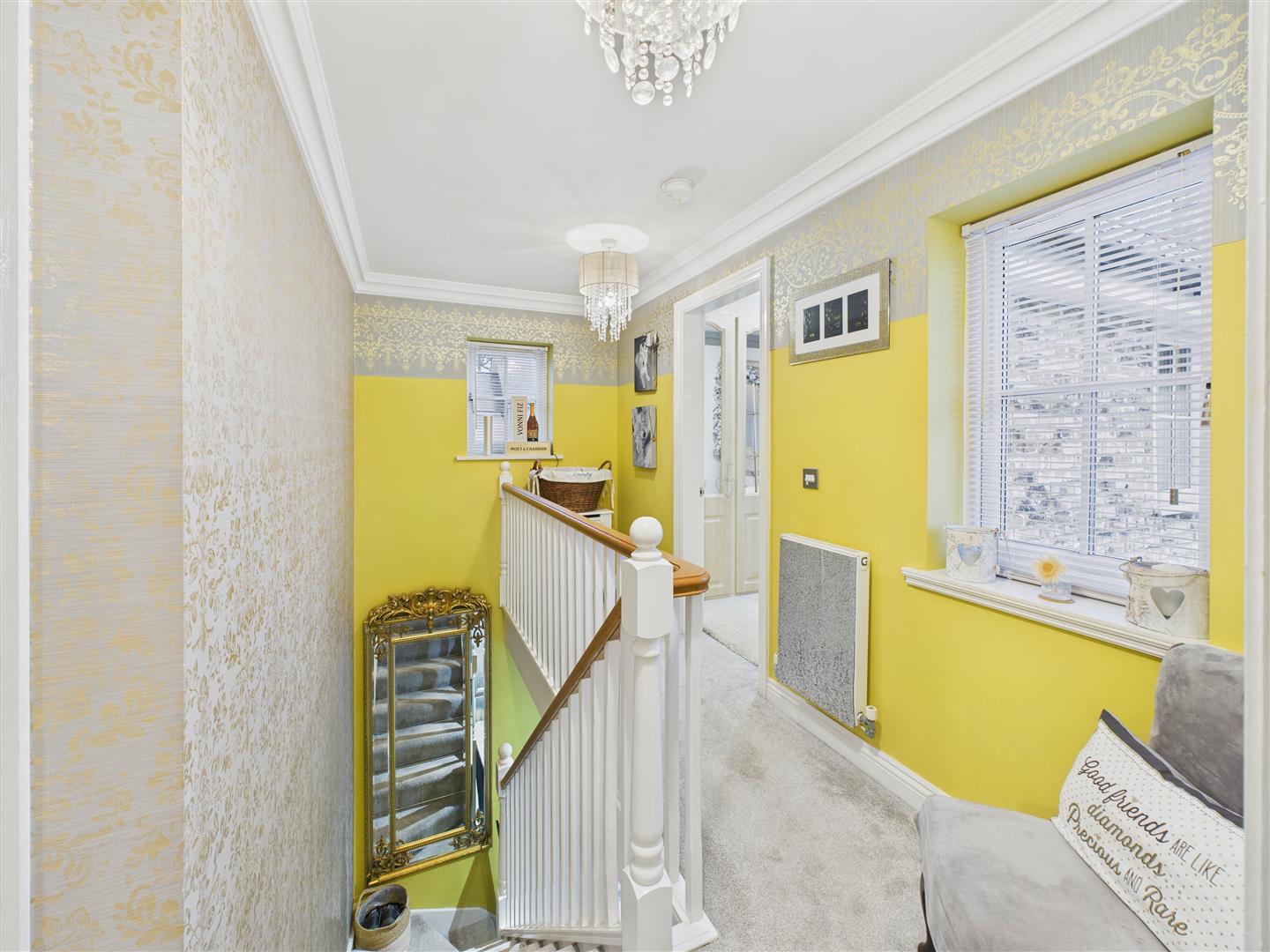 Windows to side and rear elevations. Airing cupboard off housing the hot water tank and solar panel controls. Access to loft area.