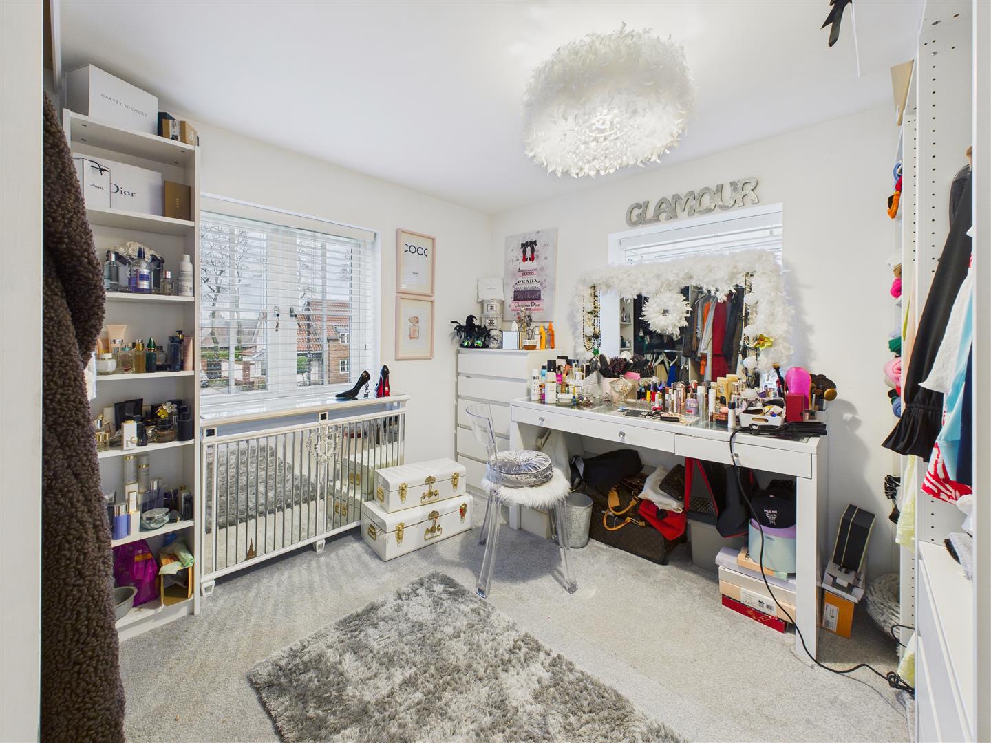 Currently used as a dressing room with open fitted wardrobing and viewings across the green to the front.