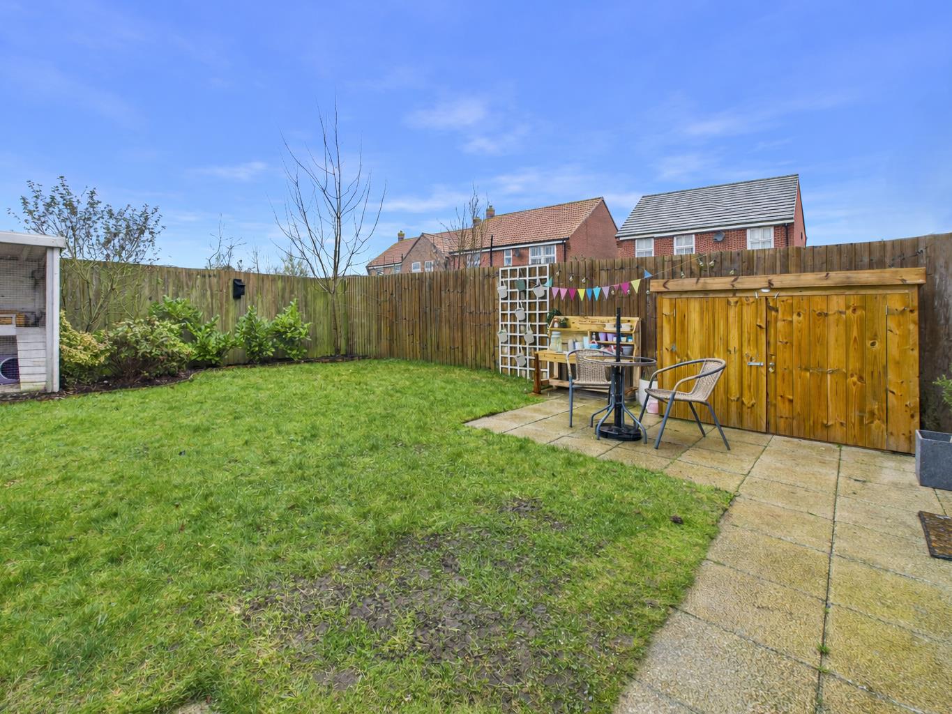 The rear garden benefits from a south-facing aspect and features a paved patio area to the immediate rear of the property followed by lawn. A drive extends to the side of the property, also providing off-street parking for up to two vehicles. There is an additional area of lawn to the front of the property.
