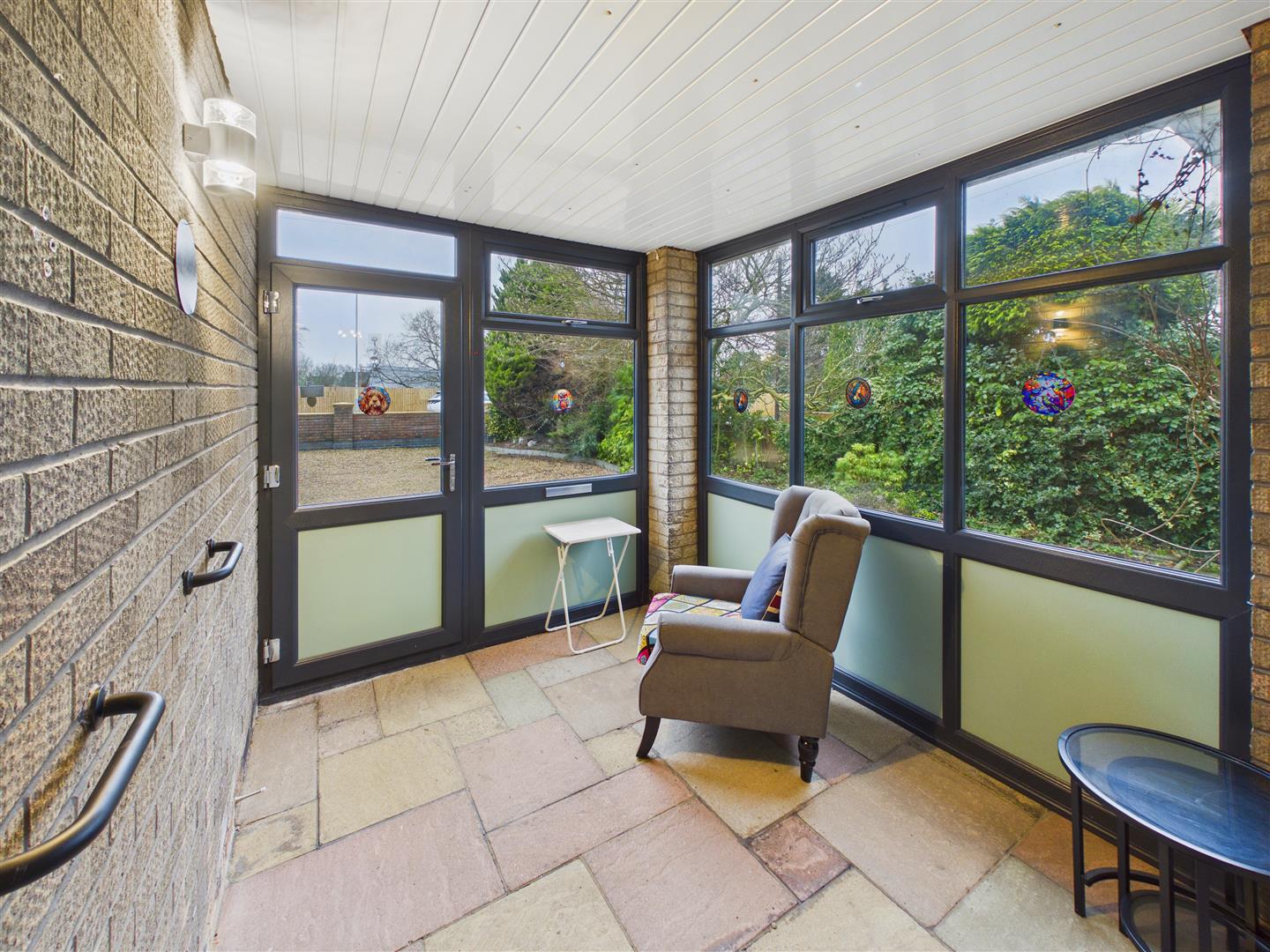 The property is set back from the road with an extensive gravelled parking forecourt leading to a single garage. The private rear garden offers a quiet outdoor retreat, perfectly complementing the bungalowâs significant frontage.