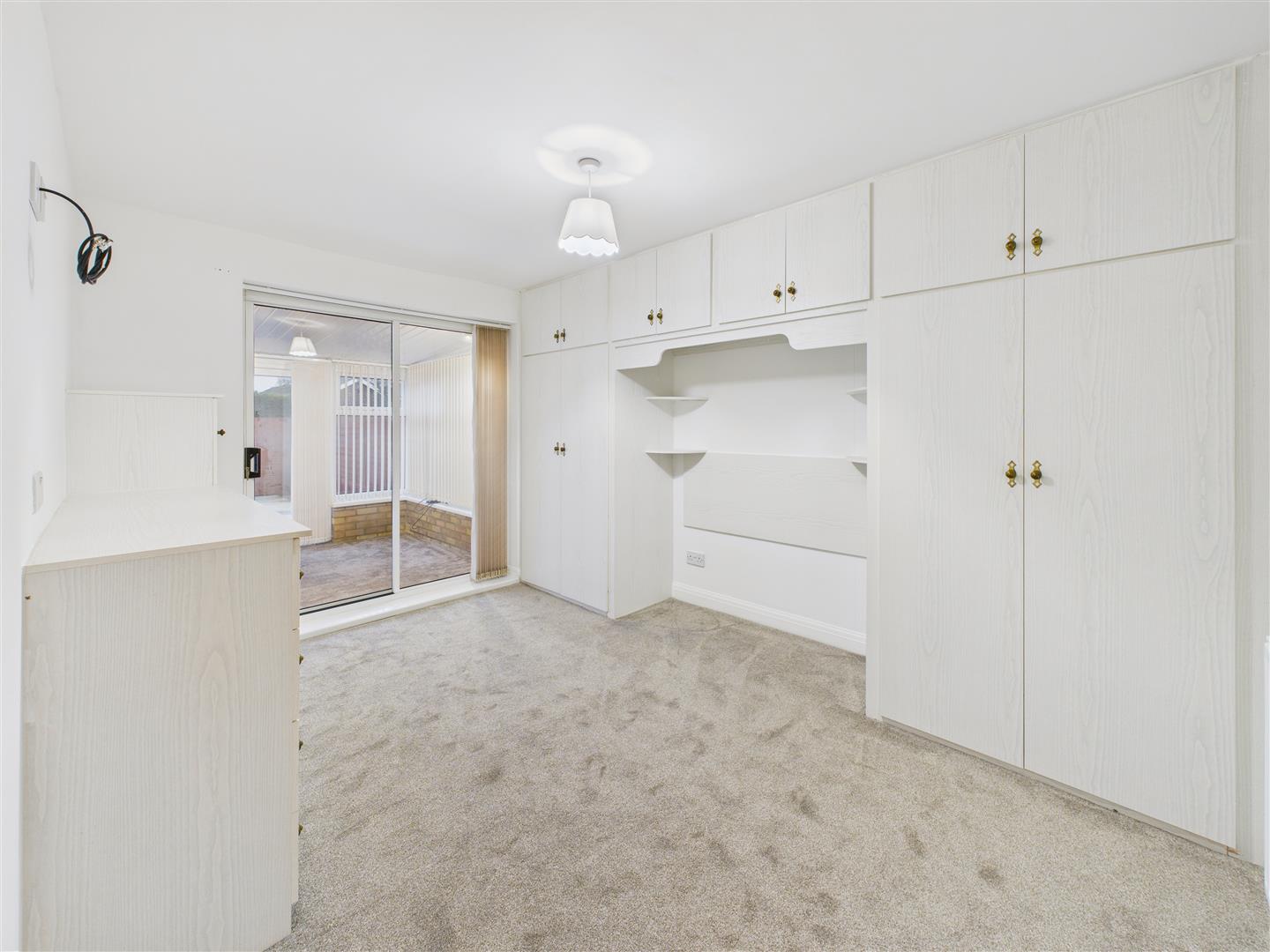 With fitted furniture including wardrobes, overhead storage and drawers. Patio doors lead through to the garden room.