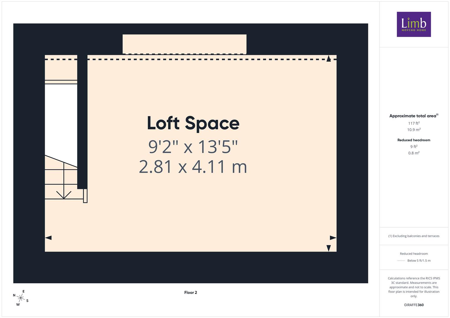 With fixed staircase leading up to the loft space. Window to rear.