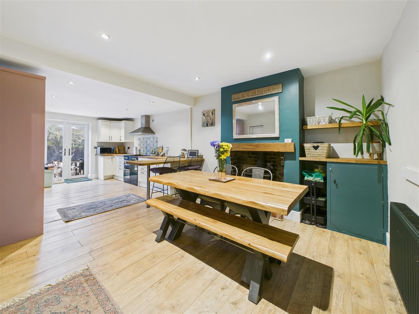 Offered for sale with no onward chain, this smartly presented terraced home has been thoughtfully extended and updated to suit modern living. The heart of the home is the impressive open-plan living and dining kitchen, which features contemporary fittings and a multi-fuel stove that adds character to the dining area. Complementing the open-plan space, the separate lounge provides an additional living area centered around a feature fireplace. The property benefits from gas central heating and uPVC double glazing.