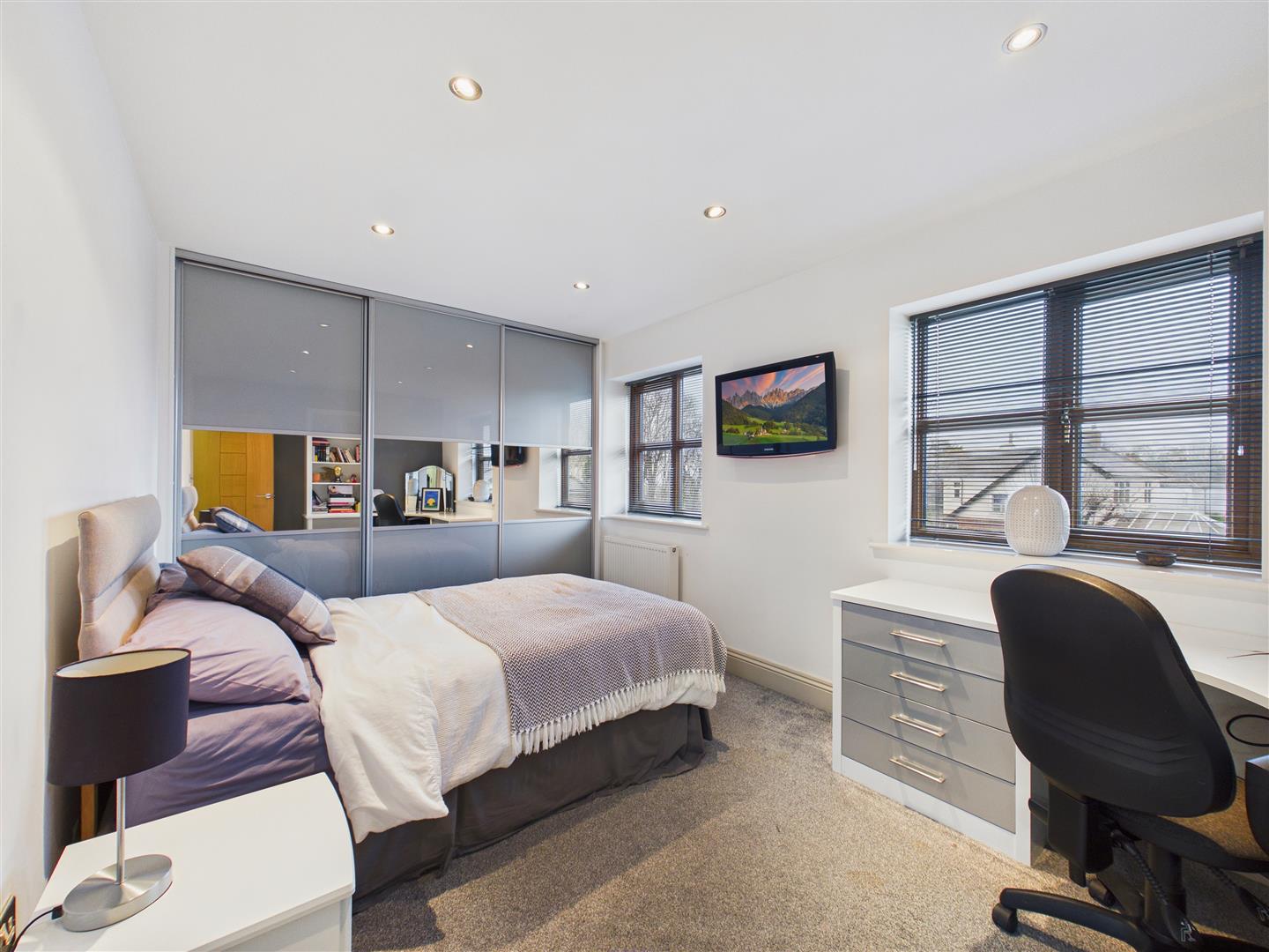 With fitted cupboards/wardrobes, two windows to side elevation, wall mounted TV point.