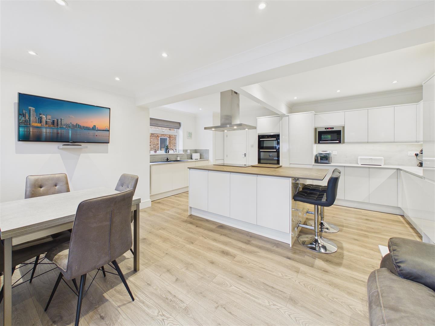 Viewing is highly recommended to fully appreciate this extended semi-detached house, which has been thoughtfully designed to offer exceptional open-plan living and a high-specification finish. The heart of the home is a fabulous living kitchen, featuring a central island with premium Dekton ‘Kira’ worktops and an array of integrated appliances, creating a perfect space for both family life and entertaining. This is complemented by a spacious entrance hall and a separate, comfortable lounge.