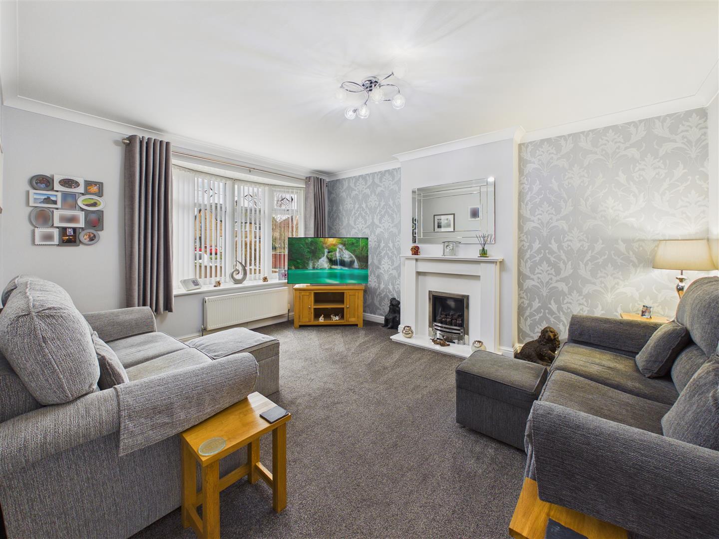 Featuring a bow window to the front elevation and fire surround housing a living flame gas fire.