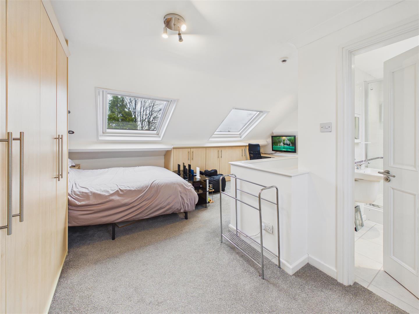With fitted wardrobes and desk. Window to rear and two Velux windows with fitted blinds to the front.