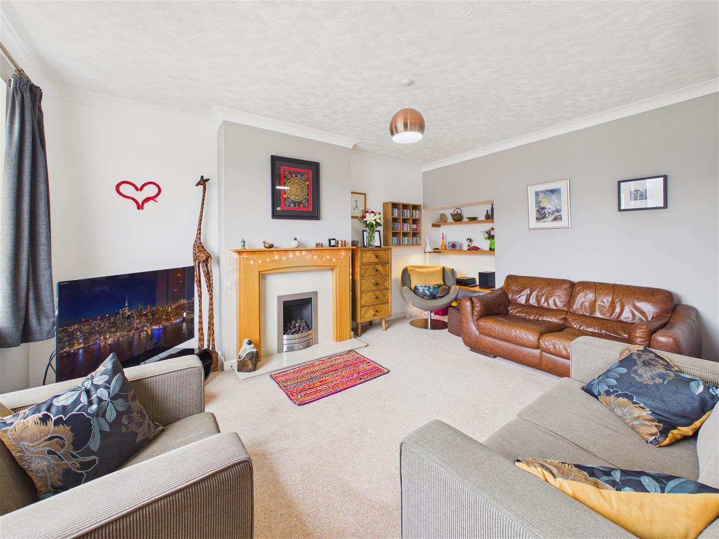 Spacious room with feature fire surround housing a living flame gas fire and windows to the front elevation.