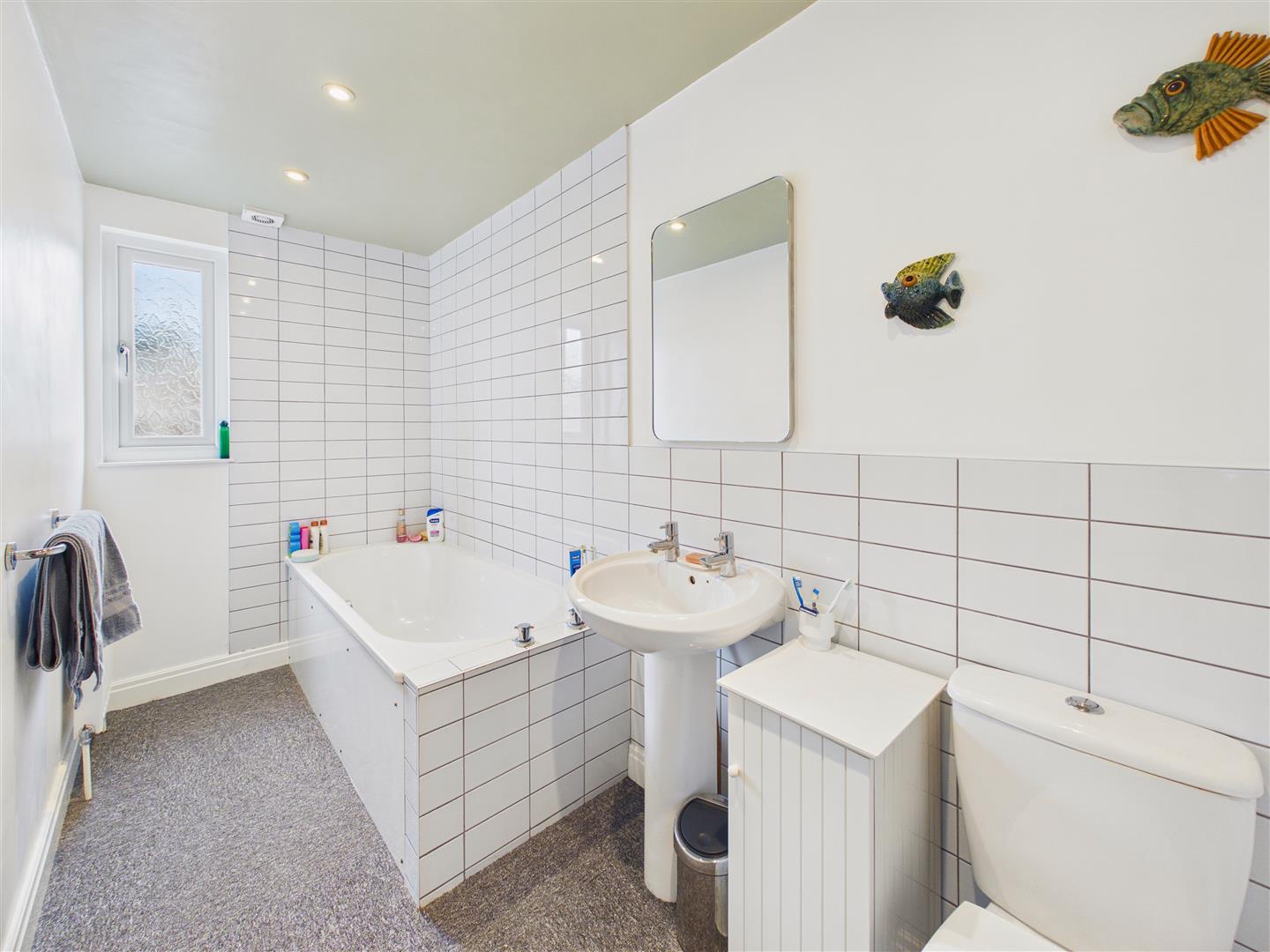 With suite comprising a bath, wash hand basin and low flush W.C. Window to rear.