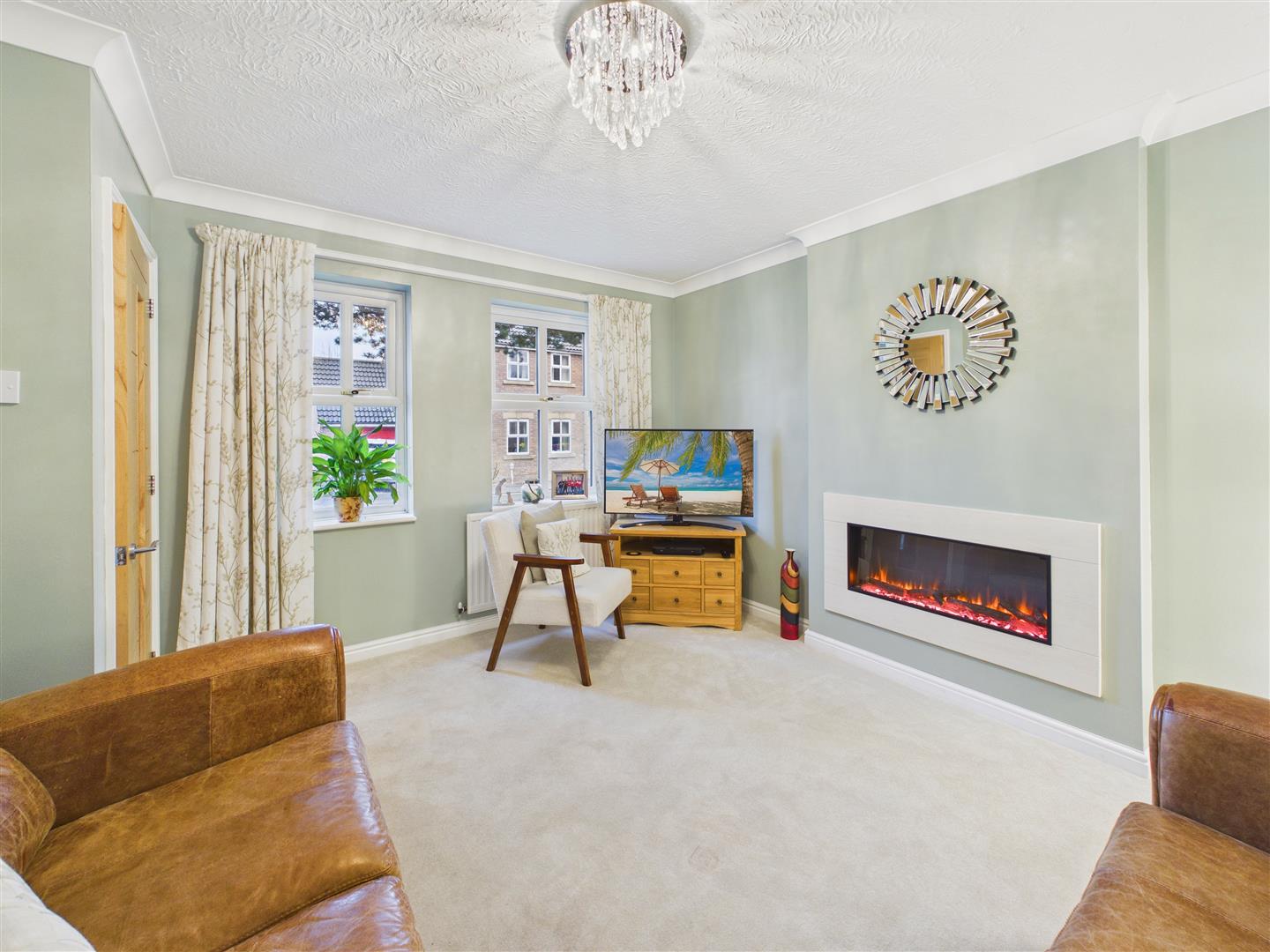 With feature wall mounted electric fire. Windows to the front elevation.