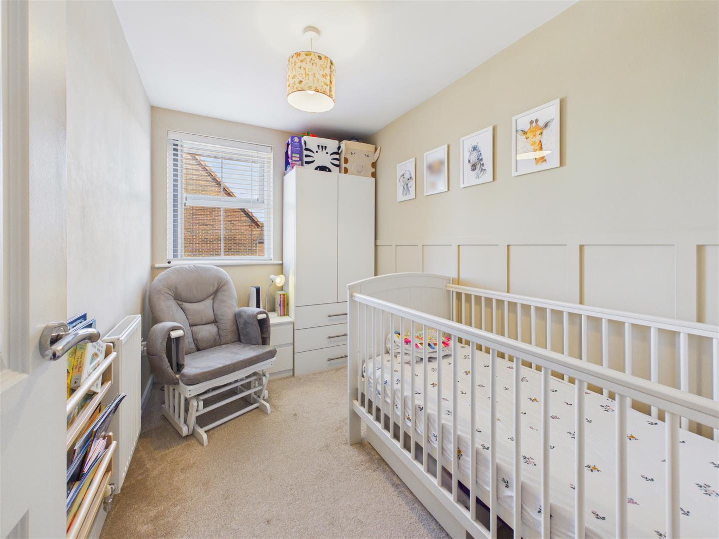 French doors from the kitchen open out to a paved patio in the garden to the side of the property, which is walled to one side. A path continues beside lawn to an additional paved patio at the far end of the garden. The front of the property is lawned, with a picket fence lining the boundary to the walkway. The plot also benefits from two allocated parking spaces to the side of the property on the Maxstead Way cul-de-sac.