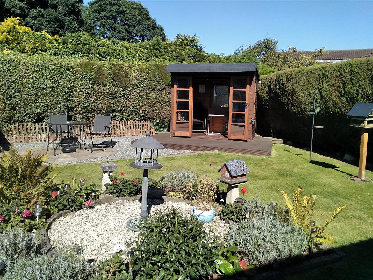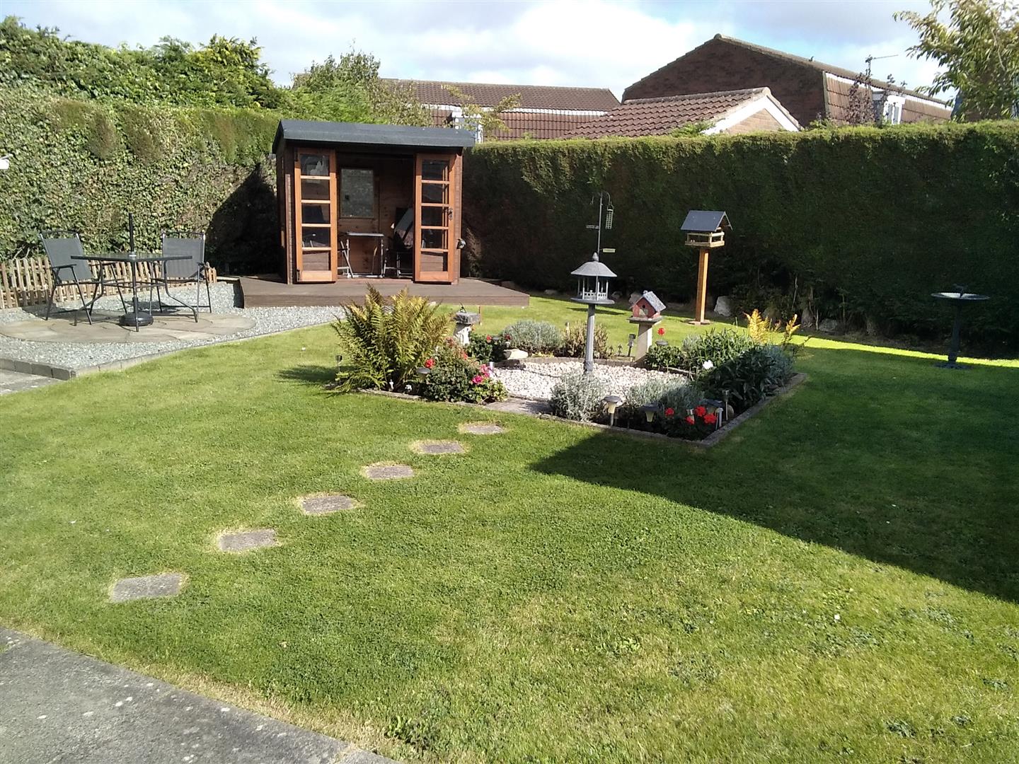 The property stands in a good sized plot with an extensive driveway extending to the front and side providing parking for multiple cars and caravan/campervan and leading onwards to the large detached, single garage with power and light supply and a remote controlled up and over entry door. The lovely rear garden is mainly lawned with patio area, garden shed and summerhouse.