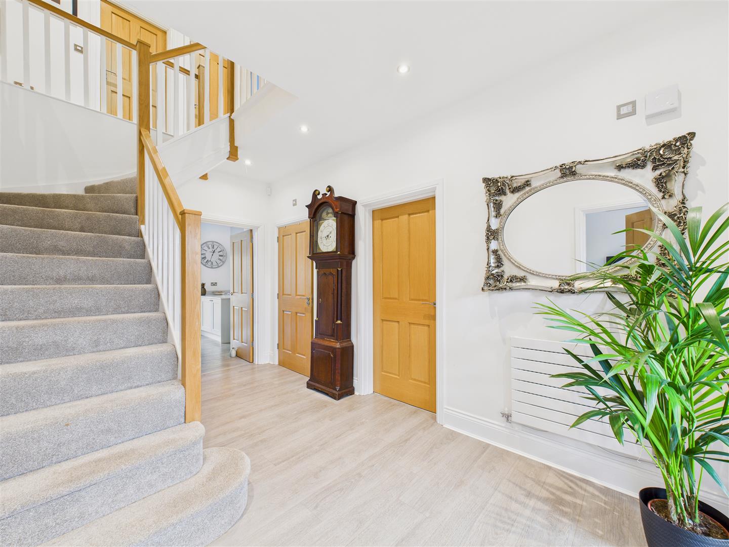 A stunning central entrance reception with a feature turning staircase leading up to the first floor.