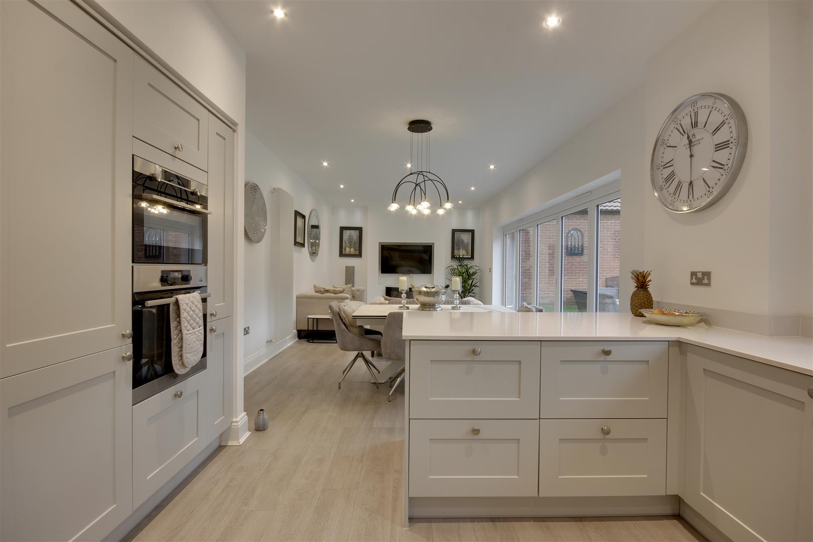 With a fabulous open aspect to the rear, this impressive five bedroomed detached house is packed full of extras and is a great layout for family occupation. Immaculately presented and situated in a prime position within this popular modern development, viewing is essential to appreciate the appeal of this very special home. The quality specification is evident throughout and the property occupies a good sized plot with parking and double garage. The accommodation is depicted on the attached floorplan, having the benefit of uPVC double glazing and gas fired central heating. A stunning central entrance hallway with galleried landing above creates a superb "first impression". There are two separate reception rooms and the living/dining/kitchen stretches across the rear of the house with bi fold doors opening to the garden. The kitchen comes complete with an array of fitted units, integrated appliances and quartz work surfaces. Practicalities are catered for by a utility room and downstairs W.C.. Upstairs are a series of five bedrooms, two of which have en-suites and there is a style four piece bath/shower room. A particular feature is the rear aspect across open space beyond the landscaped garden. The gardens themselves have been attractively set out including an extensive paved patio area to the back of the house. In all a fine home of which early viewing is strongly recommended. There is to be no forward chain therefore, early completion should be possible.