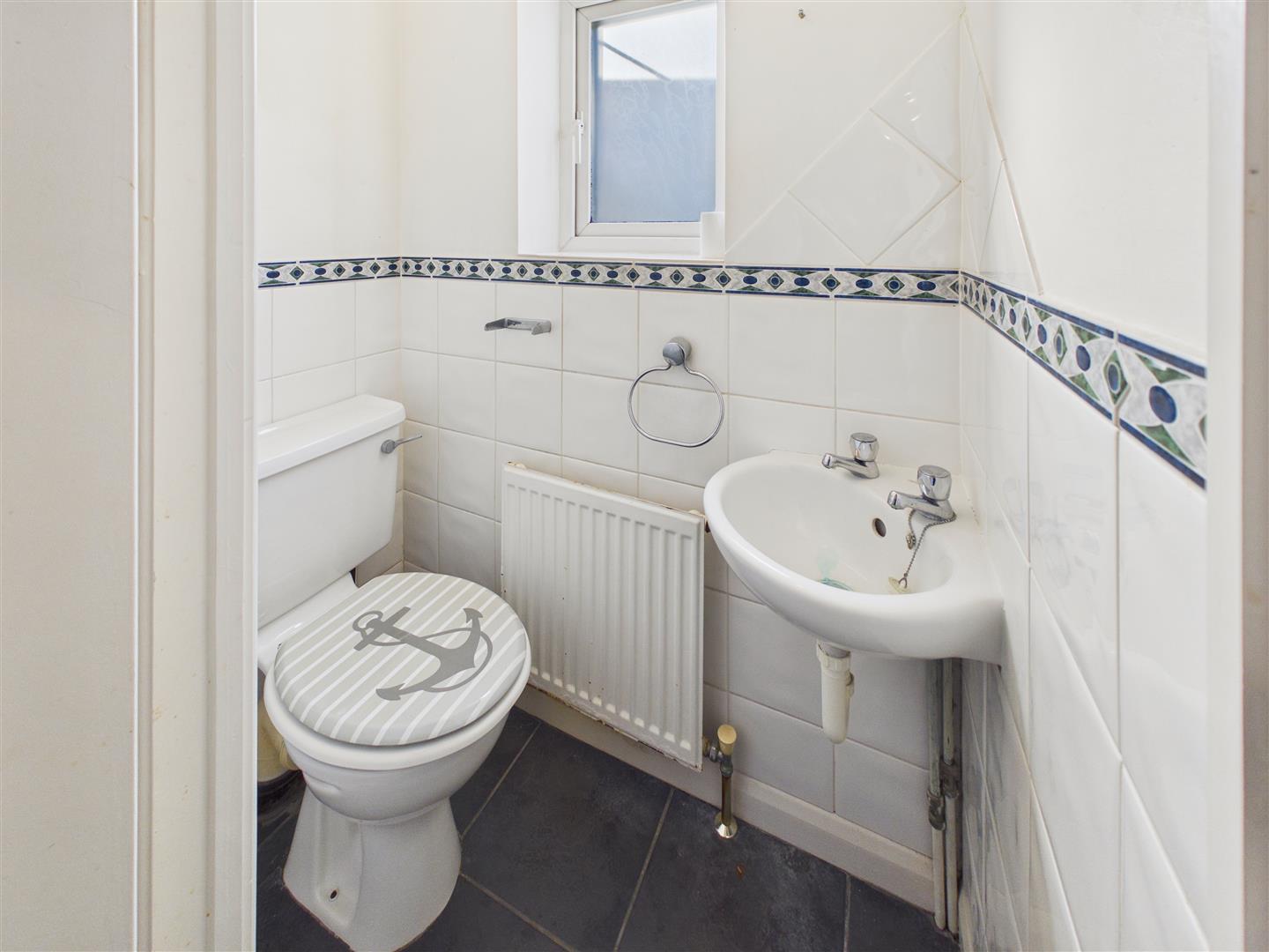 Half-tiled, comprising low flush W.C., wash-hand basin and window to rear.