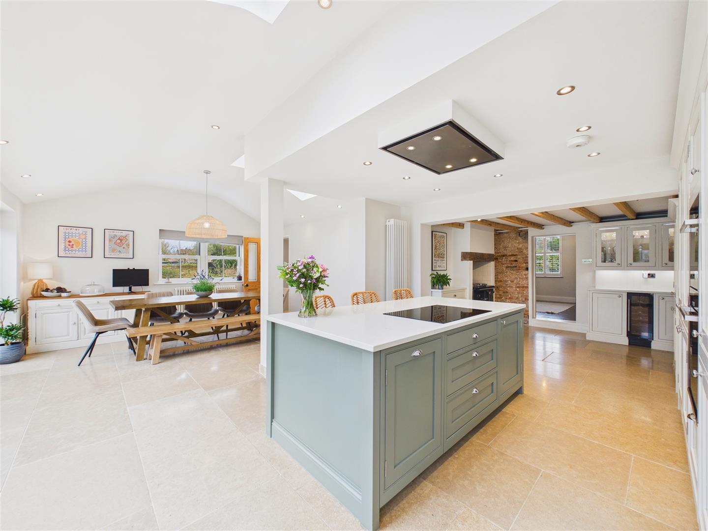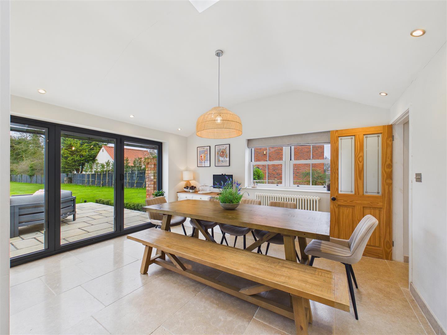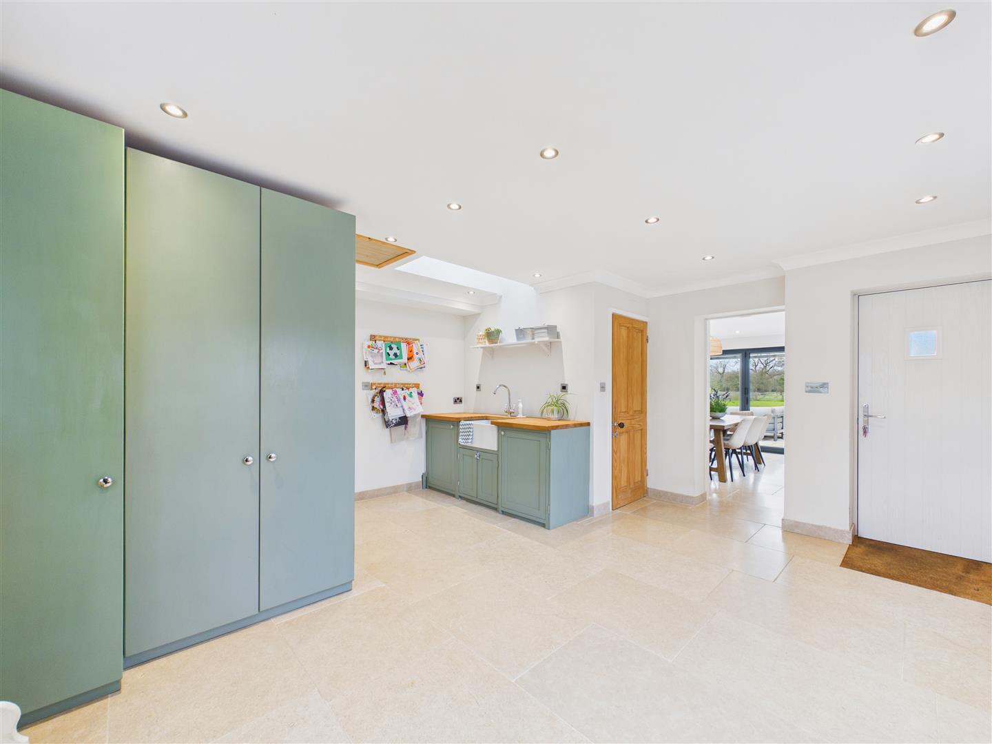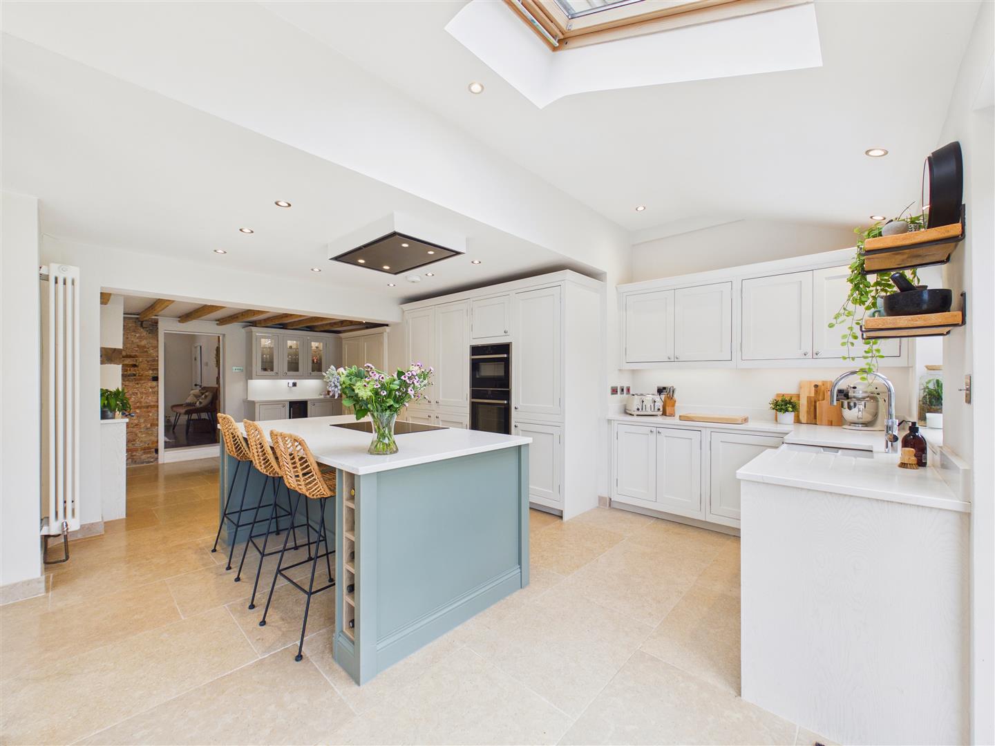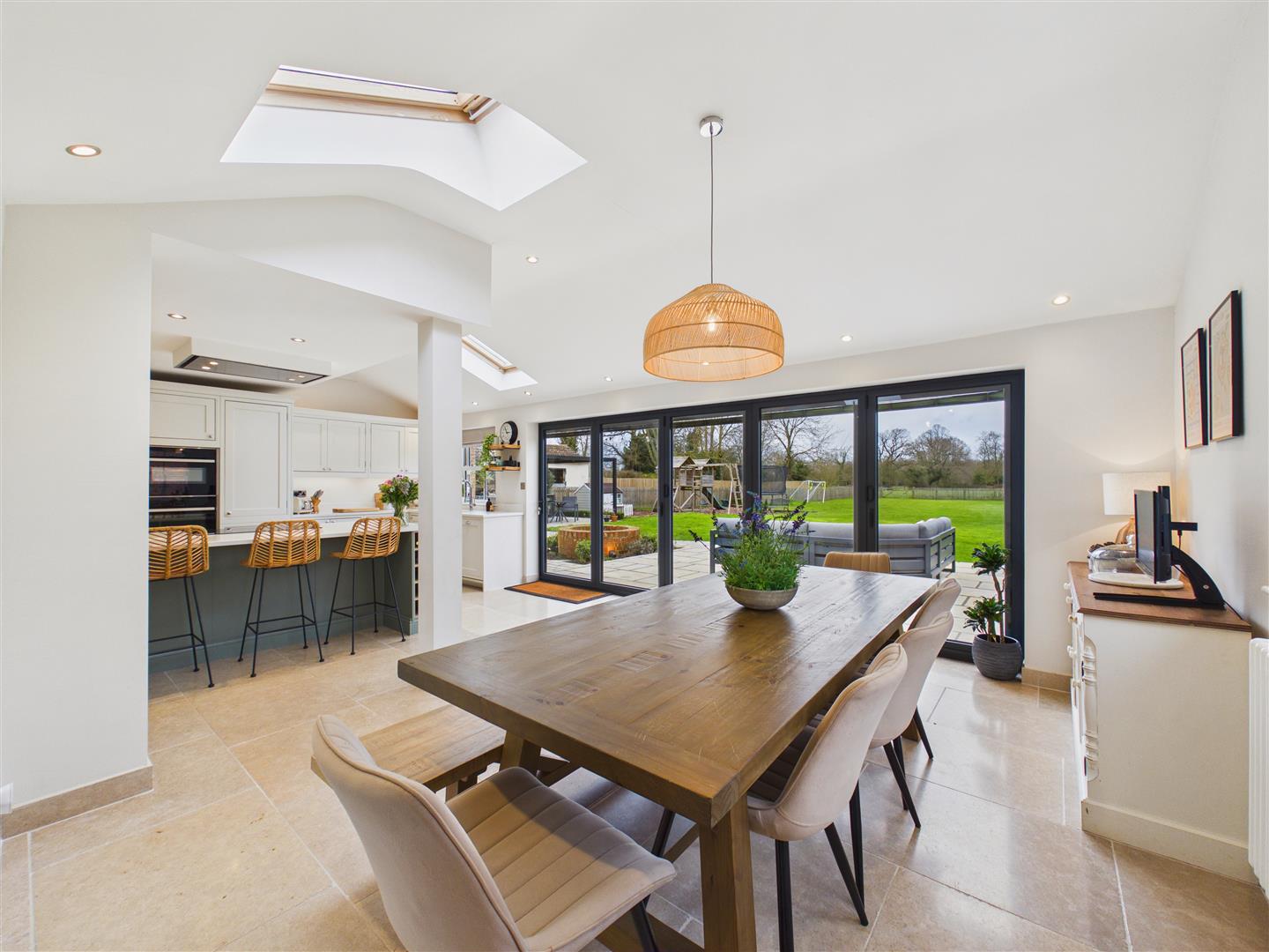 The heart of this home has been beautifully re-modelled for contemporary life. The stunning dining kitchen is a masterclass in design, featuring sleek quartz worktops, a central island, and bi-folding doors that dissolve the boundary between the interior and the garden. It is a space built for the realities of family life, supported by a substantial utility/boot room—essential for country living—and three versatile reception rooms.