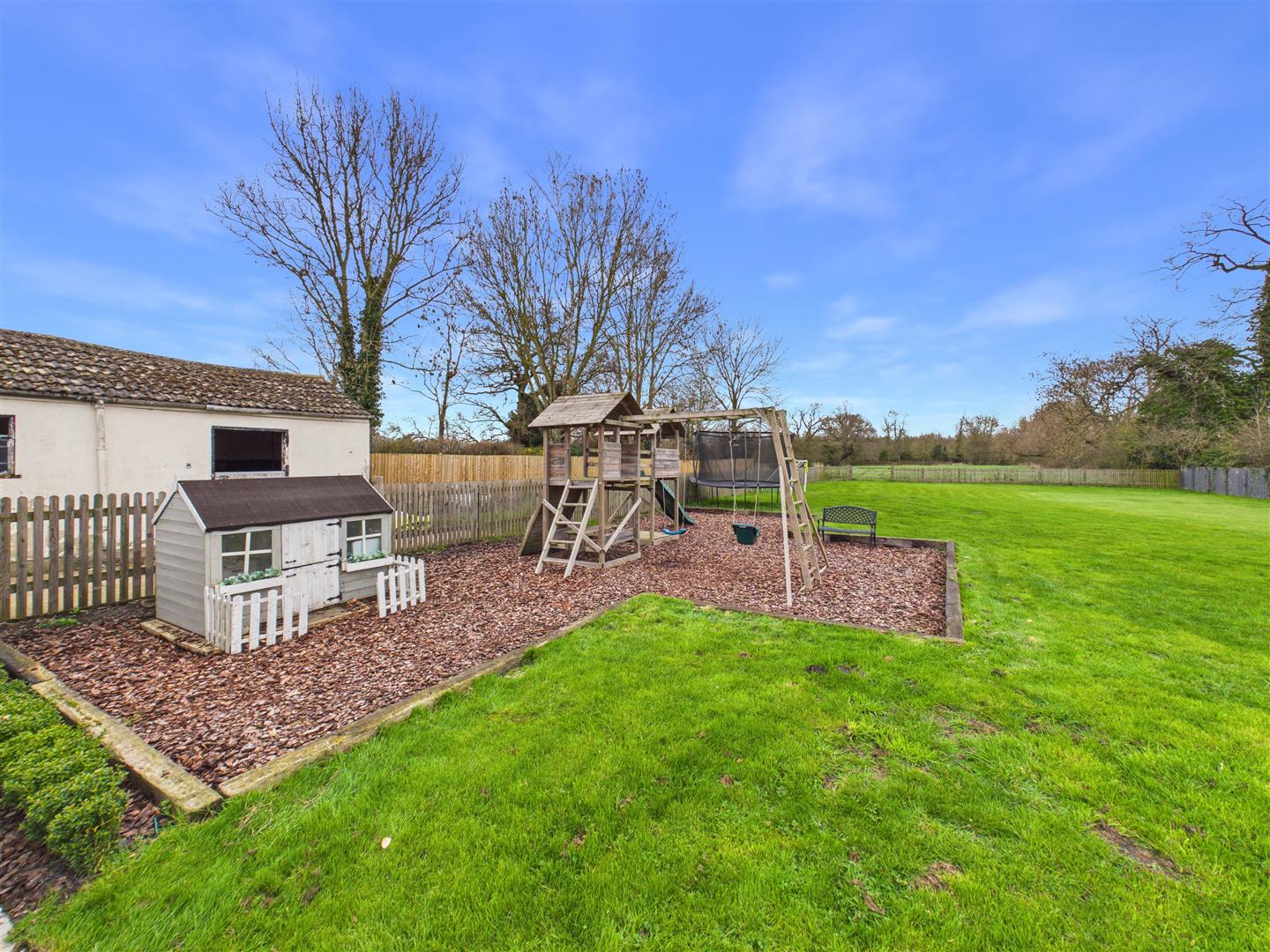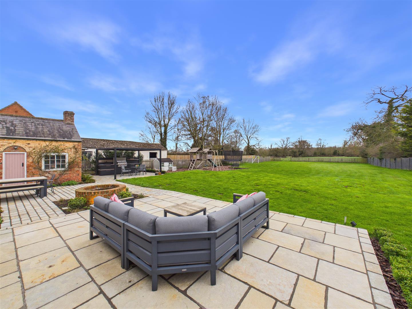 The property is set within approximately 2.2 acres of versatile grounds, offering a rare blend of formal gardens and functional land. The arrival is served by two practical gravelled driveways providing extensive off-road parking, one of which is beautifully framed by a mature magnolia tree. To the rear, the garden has been thoughtfully designed for outdoor living; an expansive patio features a fully equipped outdoor kitchen with a built-in BBQ, fridge, and sink. This leads onto a large lawn with a dedicated children’s play area, with a farm gate providing direct access to the paddock beyond.