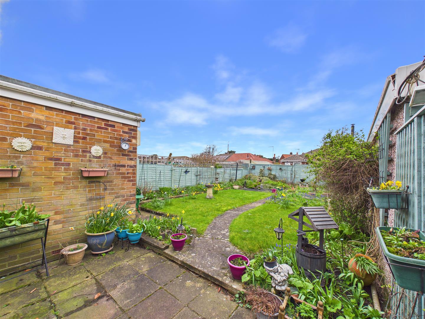 With fitted units & worksurfaces, one-and-a-half sink & drainer beneath window to the rear, plumbing for a washing machine and additional window to the side of the property. A door opens out to the paved patio.